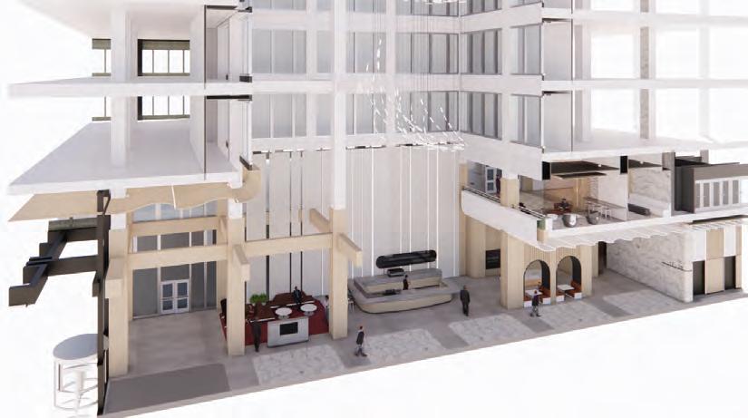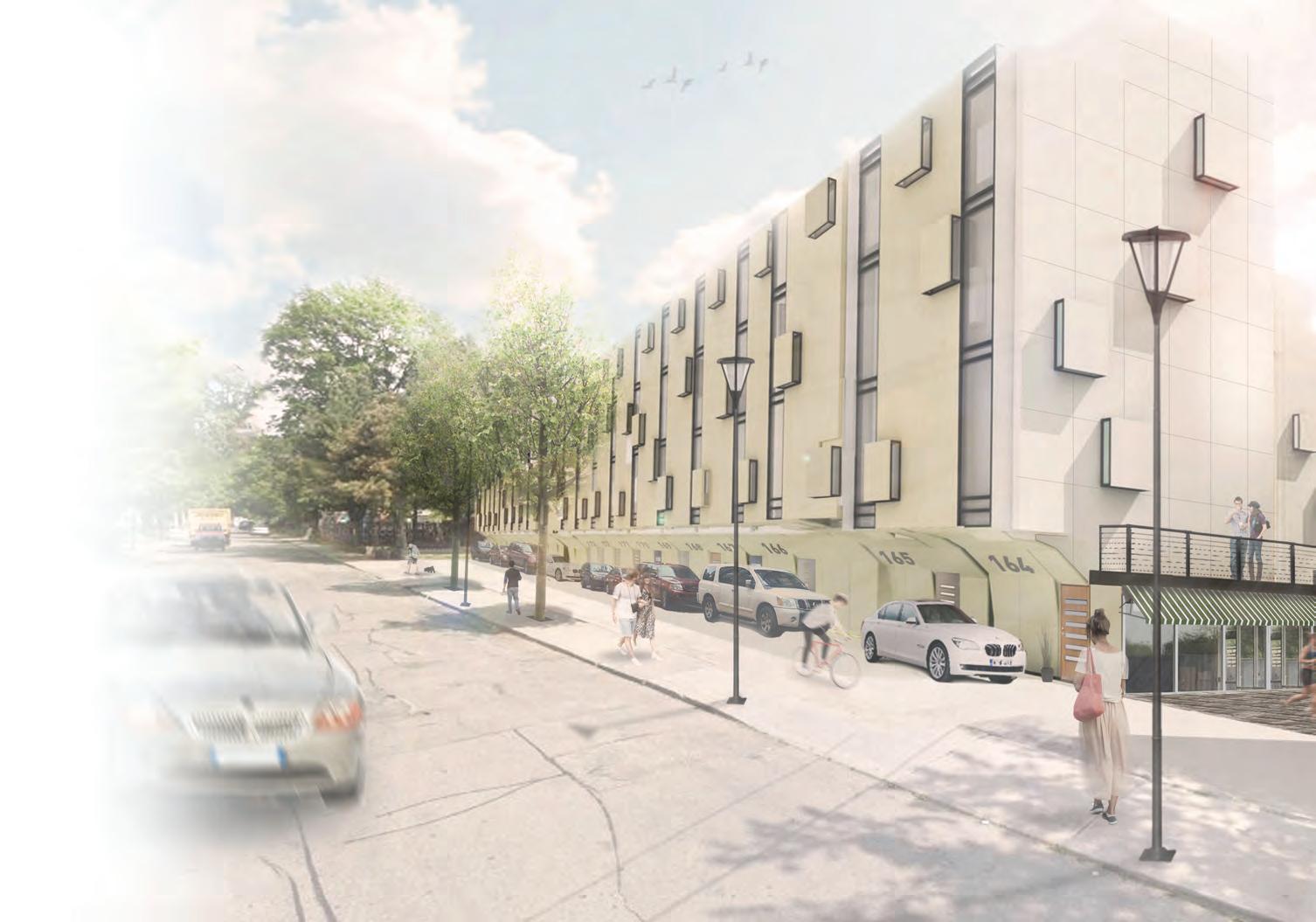 Looking at how both the car and commercial spaces could enhance a dense, yet liveable residential experience overall axonometric of site