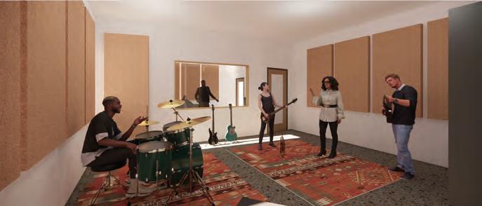 Adpative reuse & renovation of existing 25,000 sq ft industrial casket factory building to a community center & performing arts center for non-profit organization, BandWith. The building will include recording studios, music library, dance studio, practice rooms, and office spaces for BandWith organization.