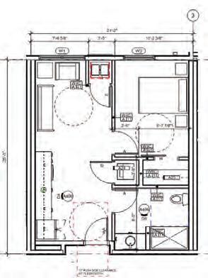 LEVEL 100' -0" LEVEL 100' -0" LEVEL 114' -0" LEVEL 114' -0" LEVEL 124' -8" LEVEL 124' -8" LEVEL 135' -4" LEVEL 135' -4" T/ROOF SLAB 146' -0" T/ROOF SLAB 146' -0" 0.9 UPPER PARAPET 157' -10" T/ UPPER PARAPET 157' -10" G2 A3.402 T/LOWER PARAPET 148' -4" T/LOWER PARAPET 148' -4" 7.3 D2 A3.402 28' 0" 25' 0" 14' 3/8" 20' 5/8" 14' 1/4" 10' 3/4" 0" 24' 25' 21' 11" 17' 16' 0" 23' 10" ELEV LOBBY C301 ELEV LOBBY C401 MECH C503 A3.503 A3 Sim A3.504 C3 Sim A3.507 Sim A3.508 Sim C3 A3.603 6.4 5.10 7.2 8.2 35 EAST WACKER DRIVE, SUITE 1500 CHICAGO, IL 60601 Ph 312.658.0747 1/8" 1'-0" A3.401 G4 BUILDING SECTION E-W 1 A4.006 9 W-1 D-1 RANGE AND HOOD VENT MW BELOW DW REF 266 REMOVABLE A4.006 8 7 6 265 263 268 REMOVABLEREMOVABLE A4.006 4 5 U06 U02 U03 U10 U07 U02 U01 0B3 0B/C6 0A3 0B3 0B/C3 0B/C3 0C3 0A3 0A3 0A3 3' 261 9 5 /8 61 0 1 /2 27 0B6 0B/C3 260 260 260 TA-12 TA-16 TA-14 TA-8 REMOVABLE SINK CABINET. FLOOR AND WALL TO BE FINISHED UNDER CABINET. PROVIDE FASCIA AND FINISHED SIDE PANELS, 36" IN WIDTH DRAWING TITLE DRAWING NO. A Job # 3 1 750 N. AVERS 750 N. AVERS AVE., CHICAGO, ILLINOIS A4.006 UNIT 1-1-M - ENLARGED PLANS, RCPS, ELEVATIONS 21_006352 548 CAPITAL DEVELOPMENT UNIT TYPE 1-1-M FLOOR PLAN SECTION 504 MOBILITY UNIT 3/8" = 1'-0" A4.006 4 UNIT TYPE 1-1-M KITCHEN SOUTH DRAWING ISSUE #DESCRIPTIONDATE 90% ISSUED FOR REVIEW UPDATED GMP 04.28.2023 1ISSUED FOR PERMIT05.19.2023 4ISSUED FOR PERMIT06.02.2023 7ISSUED FOR PERMIT07.14.2023 LAUNDRY ATS 6.11PROVIDEDIN-UNIT SECONDARY BED CL L FT ATS 6.7 SECONDARY BED SQ FT ATS 6.7 A4.006 9 W-1 D-1 REMOVABLE A4.006 8 7 6 265 263 268 U06 U02 U03 U02 0B3 0B3 0B/C3 0B/C3 0C3 0A3 0A3 0A3 261 9 5 /8 61 0 1 /2 2 7 0B6 260 260 260 TA-12 TA-16 TA-14 TA-8 PT-01 PT-01/03 WB-01 GENERAL NOTES 1. ALL UNIT WINDOWS TO RECEIVE ROLLER SHADES 2. ALL UNIT BULK STORAGE -AS DESIGNATED BY DIAGONAL CROSS HATCH -TO BE AT LEAST 8'-0" MIN CLEAR HEIGHT 3. ALL UNIT CLOSETS AND LAUNDRY AREAS TO RECEIVE FINISHES OF ADJOINING ROOM U.N.O. 4. ALL FURNITURE AND ELECTRONIC EQUIPEMENT IS SHOWN FOR REFERENCE ON POTENTIAL USE OF SPACE. UNITS WILL NOT BE FURNISHED. ACCESSIBLE PATH 8'-0" AFF GYPSUM CEILING 9'-4 1/2" AFF GYPSUM CEILING BLOCKING IN TV WALL-REFER TO DETAIL HANGING STORAGE BEARING WALL OPENING REMOVABLE CABINET ADDITIONAL CABINET BLOCKING KEYNOTE LEGEND UNIT INFORMATION 218 TL-02 U02 TA-7 TA-9 TA-13 80 " TL-02 T-1 TA-15 TA-15 TA-11 80 TA-15 RG-1 RF-1 DW-1 TL-02 QZ-01 T / B O T T O M S H E L F 4 7 1 /2 " M A X FILLER 2' 9" MIN 3/4" MIN 1' 11 3/4" 3' 0" HOLD 2' 7 1/2" HOLD 2' 6 1/2" MIN 9" FILLER 11' - 2 3/4" 58 " H O L D 24 WM-01B WM-01A WM-01B RH-1 A5 A5 REMOVABLE SINK CABINET. FLOOR AND WALL TO BE FINISHED UNDER CABINET. PROVIDE FASCIA AND FINISHED SIDE PANELS, 36" IN WIDTH REMOVABLE CABINET FOR WORKSPACE. FLOOR AND WALL TO BE FINISHED UNDER CABINET. PROVIDE FASCIA AND FINISHED SIDE PANELS, 31 1/2" IN WIDTH. PROVIDE FILLER PANEL WM-01A F1 L-1 WM-01B A5 A4.602 A2 A4.602 D1 A4.602 A4 A4.602 E5 A4.602 FILLER 9" 2' 6" FILLER 2' - 6" 3' - 0" 2' - 0" D5 A4.602 21 0 " M A X 14' 1 1/4" 80 1 /4 1 4 1 /2 9 4 3 /4 25 29 C1 A4.602 FILLER 35 EAST WACKER DRIVE, SUITE 1500 CHICAGO, IL 60601 Ph 312.658.0747 4 5 6 3 750 N. AVERS AVE. 750 N. AVERS AVE., CHICAGO, ILLINOIS 60651 548 CAPITAL DEVELOPMENT 218 GRAY-BOX EQUIPMENT TO BE INSTALLED AT WASHING MACHINE SIDE. ARCHITECTURAL WALLS TO BE SIZED TO ACCOMMODATE THIS EQUIPMENT. CONTRACTOR TO VERIFY PRIOR TO FRAMING. 260 PROVIDE IN-WALL REINFORCING FOR GRAB BARS IN THIS LOCATION. REFERENCE SHEET A0.001 FOR LOCATION AND MOUNTING HEIGHT INFORMATION. 261 PROVIDE REMOVABLE SHOWER BENCH. REFERENCE SHEET A0.001 FOR LOCATION INFORMATION. 263 60" X 66" CLEAR FLOOR SPACE TO REMAIN. LAVATORY AND VANITY MAY ENCROACH AS INDICATED. 265 CONTRACTOR TO PREPARE SCHEDULED PARTITION TO RECEIVE IN-WALL MEDICINE CABINET. REFER TO ELEVATIONS FOR MOUNTING INFORMATION. 266 PROVIDE IN-WALL BLOCKING FOR A TELEVISION IN THIS LOCATION CENTERED AT 3'-6" AFF. 268 CROSSHATCHED AREAS THROUGHOUT 1-BEDROOM UNIT INDICATE BULK STORAGE REQUIREMENTS, 9 SF. MIN. AREA MUST BE FREE OF ALL SHELVING, HANGING, ETC. 3/8" = 1'-0" A4.006 9 LAUNDRY DETAIL 3 N 3/8" = 1'-0" A4.006 6 UNIT TYPE 1-1-M BATH SOUTH 3/8" = 1'-0" A4.006 7 UNIT TYPE 1-1-M BATH EAST 3/8" = 1'-0" A4.006 4 UNIT TYPE 1-1-M KITCHEN SOUTH NORTH DRAWING ISSUE #DESCRIPTIONDATE 90% ISSUED FOR REVIEW UPDATED GMP 04.28.2023 1ISSUED FOR PERMIT05.19.2023 4ISSUED FOR PERMIT06.02.2023 7ISSUED FOR PERMIT07.14.2023 LAUNDRY ATS 6.11PROVIDEDIN-UNIT SECONDARY BED CL L FT ATS 6.7 SECONDARY BED SQ FT ATS 6.7 SECONDARY BED MIN ATS 6.7 PRIMARY BED CL L FT ATS 6.75'-0"6'-10" PRIAMRY BED BED SQ FT ATS 6.7120128 PRIMARY BED MIN ATS 6.710'-0"11'-1" COUNTERTOP LF ATS 6.56 10.9 UPPER CABINETS L FT ATS 6.54 8.5 BASE CABINETS L FT ATS 6.55 8 DINING RM SEATS ATS 6.5 REQ DINING RM ATS 6.5 KITCHEN DINING SEATS ATS 6.54 4 GENERAL ST SQ FT ATS 6.41020.3 BULK STORAGE CB FT IHDA 127272 ENTRY CLOSET FT ATS 6.33'-0"3'-0" LIVING RM MIN LR WALL ATS 6.211'-6"13'-5" LIVING RM SQ FT IHDA 6150150 BATHROOM(S) ATS 6.11 1 UNIT SQ FT ATS 6.1600604 UNIT SQ FT + 15% IHDA 6604604 UNIT 1-1-M SECTIONREQ 1 BEDACTUAL LEVEL 01 100' -0" LEVEL 01 100' -0" LEVEL 02 114' -0" LEVEL 02 114' -0" LEVEL 03 124' -8" LEVEL 03 124' -8" LEVEL 04 135' -4" LEVEL 04 135' -4" T/ROOF SLAB 146' -0" T/ROOF SLAB 146' -0" 10 0.9 UPPER PARAPET 157' -10" UPPER PARAPET 157' -10" G2 A3.402 T/LOWER PARAPET 148' -4" T/LOWER PARAPET 148' -4" 7.3 D2 A3.402 28' 25' 0" 14' 3/8" 20' 5/8" 14' 1/4" 10' 3/4" 24' 0" 25' 0" 21' 11" 17' 0" 16' 0" 23' 10" 0 8 0 8 1 0 4 ELEV LOBBY C301 ELEV LOBBY C401 MECH C503 A3.503 Sim A3.504 Sim A3.507 C3 Sim A3.508 A5 Sim C3 A3.603 6.4 5.10 7.2 8.2 LEVEL 01 100' -0" LEVEL 100' -0" LEVEL 02 114' -0" LEVEL 114' -0" LEVEL 03 124' -8" LEVEL 124' -8" LEVEL 04 135' -4" LEVEL 135' -4" T/ROOF SLAB 146' -0" T/ROOF SLAB 146' -0" 10 0.9 UPPER PARAPET 157' -10" T/ UPPER PARAPET 157' -10" G2 A3.402 T/LOWER PARAPET 148' -4" T/LOWER PARAPET 148' -4" T/PENTHOUSE SLABS 147' -4" 7.3 D2 A3.402 28' 0" 25' 0" 14' 