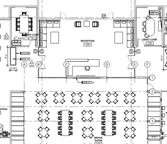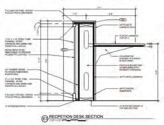 3 A B 5 426 SF MUSIC LIBRARY 09 Base Bid: Channel Glazed Wall Alternate Bid: Glazed Operable Interior Partition. Acceptable Manufacturers: Muraflex Slliding Dirtt -Folding Modernfold -Folding Falkbuilt -Sliding Full Heigh Built-in Plywood Open Shelving with Integrated Work Surface; Refer to Interior Elevations 13' 6" A2.201 9 10 NOTE: EQUIPMENT BY OWNER, TYP. SHOWN FOR REFERENCE ONLY NEW WINDOWS 1/4" = 1'-0 ENLA ENLARGED PLAN -MUSIC LIBRARY 1/4" = 1'-0 ENLA 1/4" = 1'-0" ENLARGED PLAN -SINGLE-USER RESTROOM B.O. BEAMS 112' - 10 1/4" BUILT-IN 3/4" PLYWOOD OPEN FRONT EDGE OF CONTINOUS OPEN SHELVING ON NORTH WALL PAINTED GYP. BD. WALL BEYOND B.O. BEAMS 112' - 10 1/4" BUILT-IN 3/4" PLYWOOD OPEN FRONT EDGE OF CONTINOUS OPEN SHELVING ON NORTH WALL PAINTED GYP. BD. WALL BEYOND E F 3 2 1 127 SF OFFICE STORAGE 38 214 SF COFFEE & FOOD SERVICE AREA 36 73 SF CORRIDOR 37 59 SF RESTROOM 40 61 SF RESTROOM 39 32 SF UTILITY 41 P.O.S. NEW DOOR IN EXISTING OPENING EXISTING STEEL COLUMN A B 4 5 426 SF MUSIC LIBRARY 09 Base Bid: Channel Glazed Wall Alternate Bid: Glazed Operable Interior Partition. Acceptable Manufacturers: Muraflex Slliding Dirtt -Folding Modernfold -Folding Falkbuilt -Sliding Full Heigh Built-in Plywood Open Shelving with Integrated Work Surface; Refer to Interior Elevations 13' 6" A2.201 9 10 NOTE: EQUIPMENT BY OWNER, TYP. SHOWN FOR REFERENCE ONLY NEW WINDOWS 4 F 3 4 92 SF SECURITY RECEPTION 02 185 SF VESTIBULE 01 6' 2 1/2" 6' 0" 4' 0" 4' 0" SECURITY RECEPTION DESK; SOLID SURFACE COUNTERTOP W/ INTEGRATED CABINET STORAGE OPERABLE SECURITY WINDOW WITH BULLETPROOF GLASS 2' 0" 9'7" LEVEL 01 100' - 0" B.O. BEAMS 112' - 10 1/4" BUILT-IN 3/4" PLYWOOD OPEN SHELVING RECORD TURNTABLES CD & CASETTE TAPE RECORDER PLAYERS VINYL RECORD ALBUM DISPLAY 11'6" NOTE: EQUIPMENT BY OWNER, TYP. SHOWN FOR REFERENCE ONLY 1' - 2" FRONT EDGE OF CONTINOUS OPEN SHELVING ON EAST WALL ACOUSTICAL WALLCOVERING VINYL RECORD ALBUM DISPLAY 2'10" ACOUSTICAL WALLCOVERING 1/4" = 1'-0" ENLARGED PLAN -MUSIC LIBRARY 1/4" = 1'-0 ENLA 1/4" = 1'-0" ENLARGED PLAN -SINGLE-USER RESTROOM 1/4" = 1'-0" ENLARGED PLAN -VESTIBULE & RECEPTION 3/8" = 1'-0" A2.201 9 MUSIC LIBRARY -EAST ELEVATION 3/8" = 1'-0" A2.201 10 MUSIC LIBRARY -NORTH ELEVATION LEVEL 01 100' - 0" B.O. BEAMS 112' - 10 1/4" A 11'6" INTEGRATED 24" DEPTH WORKSTATION DESK SURFACE BUILT-IN 3/4" PLYWOOD OPEN SHELVING NOTE: EQUIPMENT BY OWNER, TYP. SHOWN FOR REFERENCE ONLY FRONT EDGE OF CONTINOUS OPEN SHELVING ON NORTH WALL TACKABLE WALL COVERING PAINTED GYP. BD. WALL BEYOND B.O. BEAMS 112' - 10 1/4" BUILT-IN 3/4" PLYWOOD OPEN SHELVING 1' 2" 3/8" = 1'-0" A2.201 9 MUSIC LIBRARY -EAST ELEVATION LEVEL 01 100' - 0" B.O. BEAMS 112' - 10 1/4" A 11'6" INTEGRATED 24" DEPTH WORKSTATION DESK SURFACE BUILT-IN 3/4" PLYWOOD OPEN SHELVING NOTE: EQUIPMENT BY OWNER, TYP. SHOWN FOR REFERENCE ONLY FRONT EDGE OF CONTINOUS OPEN SHELVING ON NORTH WALL TACKABLE WALL COVERING PAINTED GYP. BD. WALL BEYOND BUILT-IN 3/4" PLYWOOD OPEN 3/8" = 1'-0" A2.201 9 MUSIC LIBRARY -EAST ELEVATION