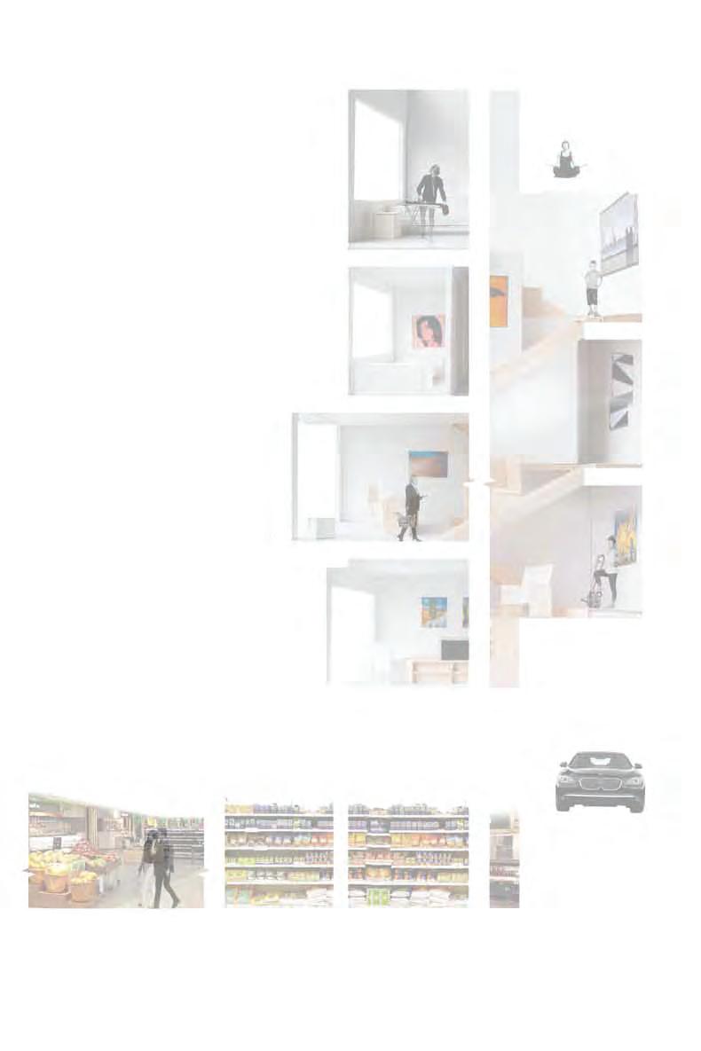 The Mews and Laneways are prime examples of streetscapes, which bring to light the involvement of the automobile as a means of integration between the space of the car and the space of the person. Our project aims to address the street in three manners (i) the way in which the circulation of space integrates between the car and the user (ii) as a means to provide slippage where the standing space of the automobile can also be an extension of the living space (iii) the establishment of the street as the residential open forum. Density is integrated into the project as tall thin residential units cased horizontally, giving every unit access to circulation
