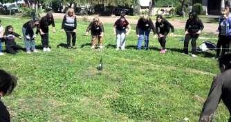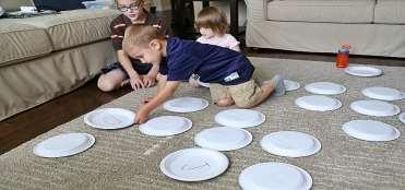 2. Se depositan varios discos y se trazan el mismo número de círculos. El objetivo del grupo es introducir cada disco en uno de los círculos.