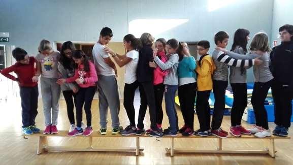 Material.- BANCO o SILLAS. Se trata de conseguir ordenarse y cambiar de lugar a través de un espacio muy estrecho. El animador invita al grupo a montarse sobre un banco, o sobre una hilera de sillas muy juntas. Una vez arriba se explica que el objetivo es colocarse según las edades, o la fecha de nacimiento, o la estatura, sin que nadie pueda bajarse