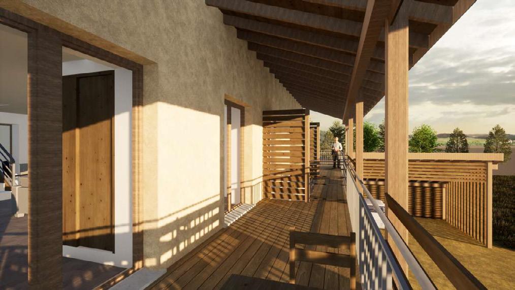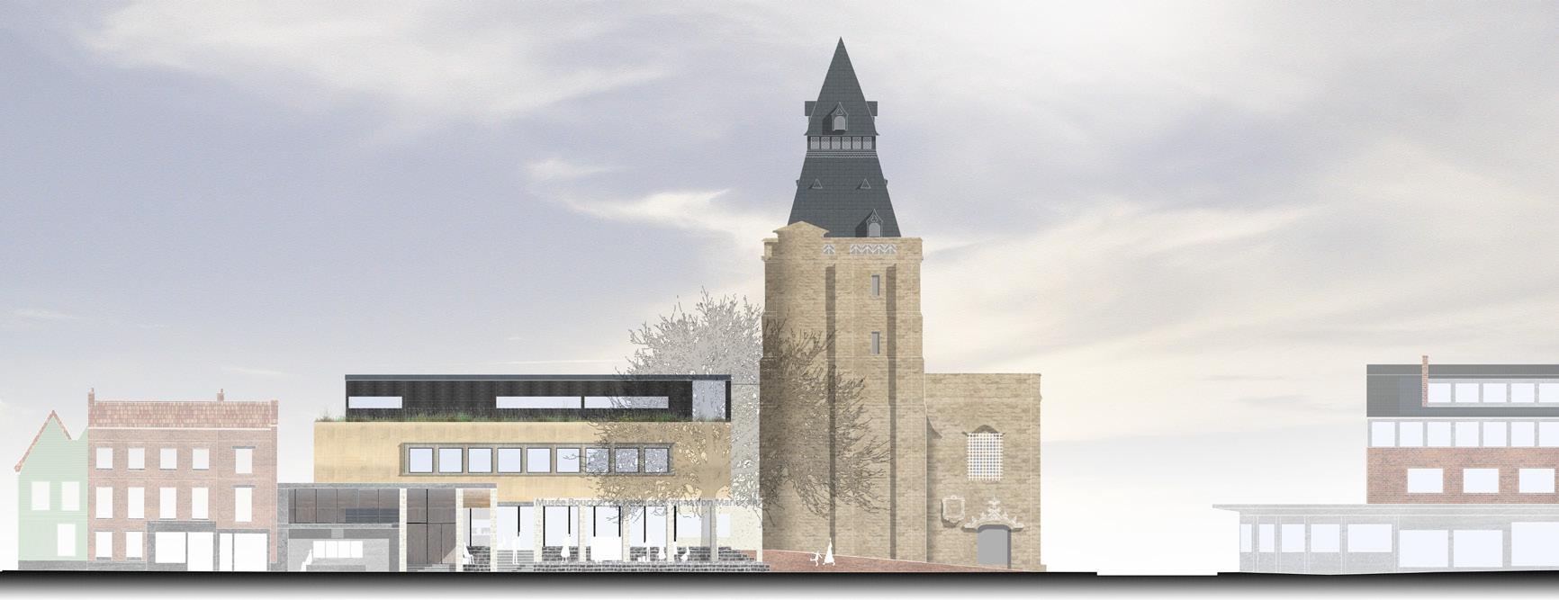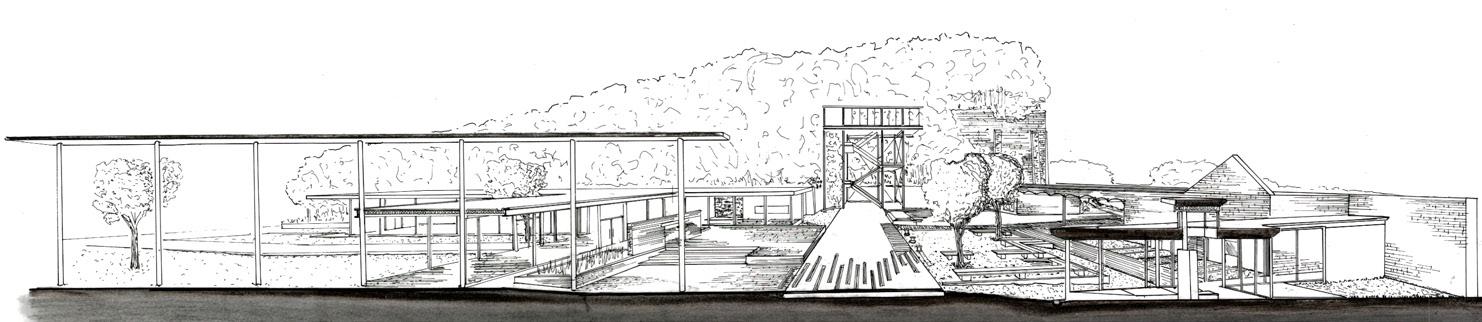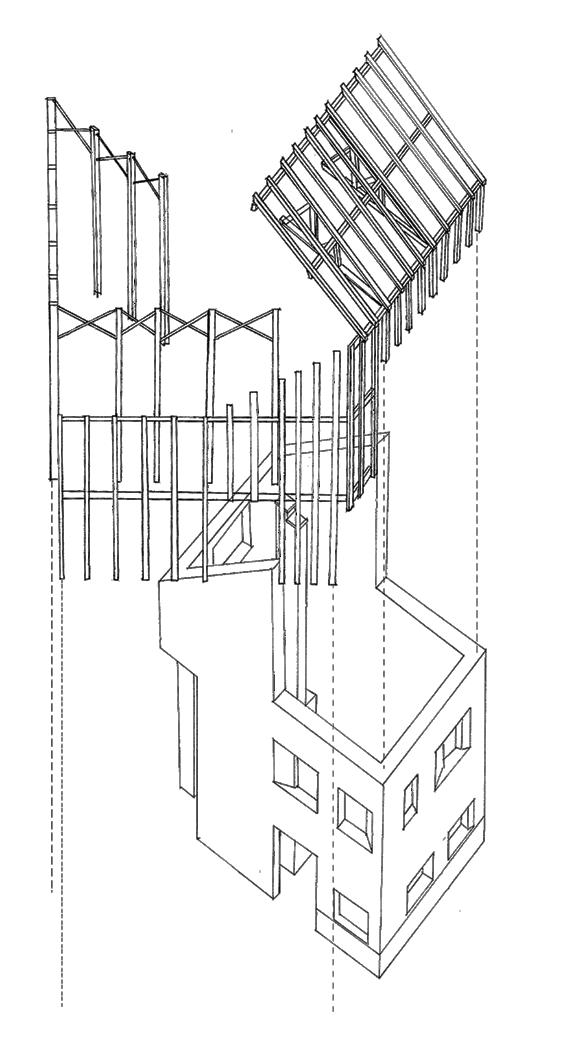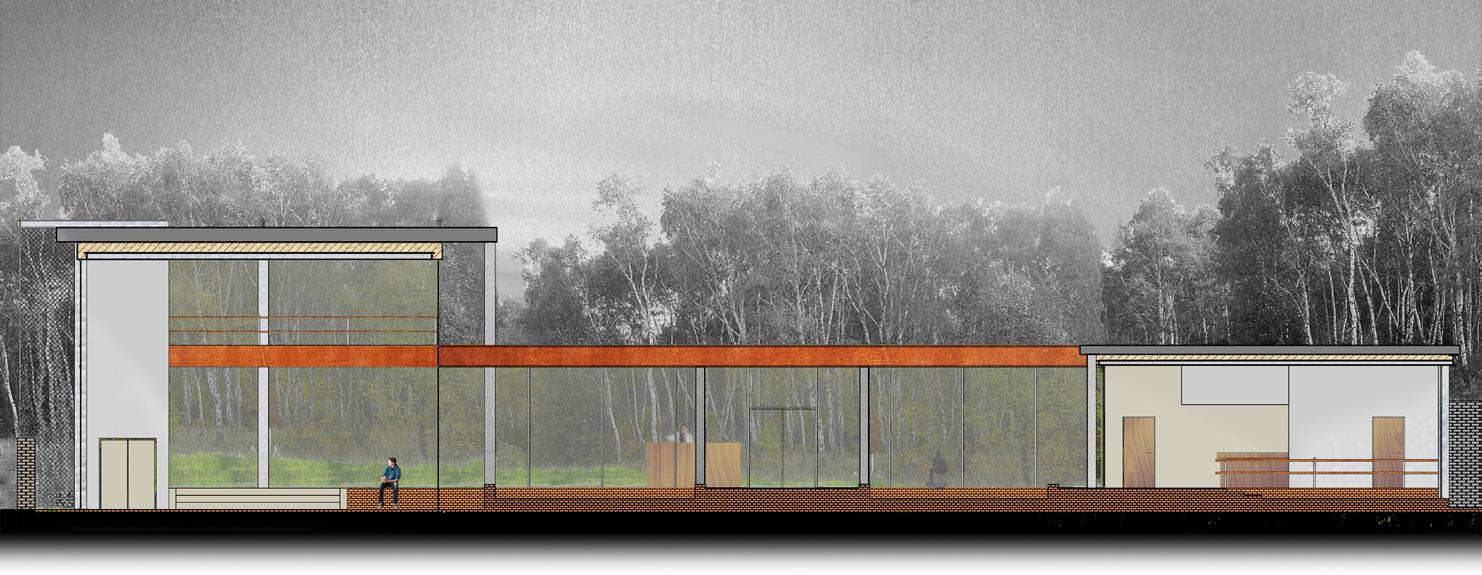 La logique additive de l’extension du projet est proposé afin de composer avec l’existant et en dévoiler ses différentes époques. L’éloge d’un territoire par l’immersion 06- Perspective et élévation ( - Photoshop - )