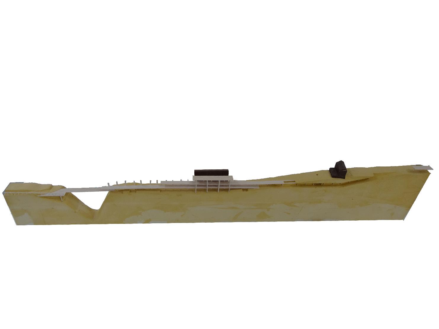 Une passerelle constitue la première étape de requalification de ce parc. Cette liaison piétonne et urbaine élance dans le paysage de Flims, une ligne, point d’accroche de programme et d’usage en fonction du lieu qu’elle traverse. Une infrastructure qui accueille donc des activités et en permet leurs accessibilités. Ce projet montre une structure légère et flexible en tant que première composantes urbaine . L’intention est de redonner une unité à l’ensemble du parcours par une structure bois qui accompagne l’usager tout au long de la passerelle. A l’image de cet assemblage qui maintient deux éléments pour en former un ensemble.