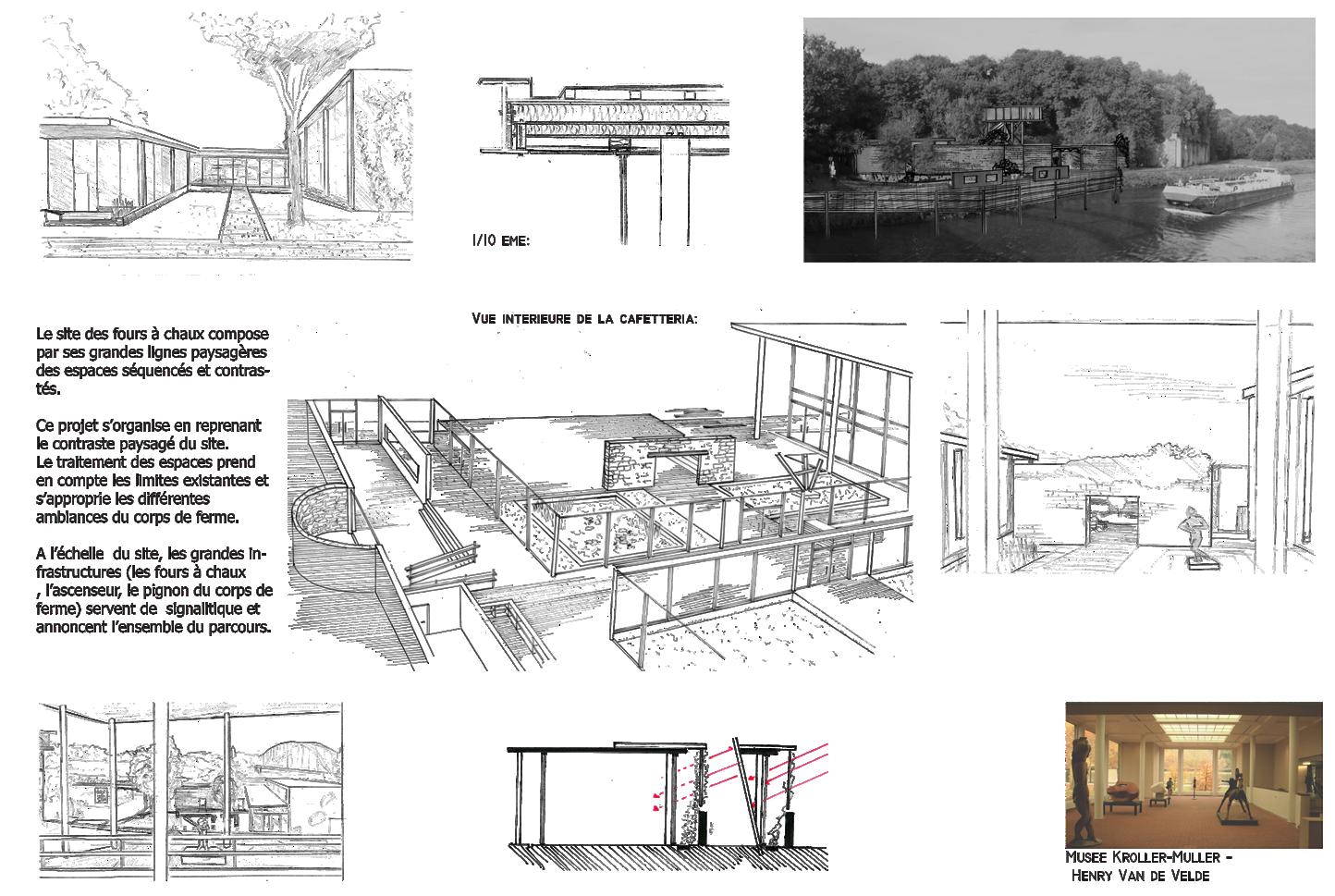 Le site des fours à chaux de Chercq se dessine par ses grandes lignes paysagères : les anciens chemins de halage et les rives de l’Escault. Un espace séquencé et contrasté par des vallons aux ambiances spécifiques de leurs histoires. Ce projet s’organise en reprenant le contraste paysagé du site, les limites existantes et il s’approprie les différentes ambiances du corps de ferme. A l’échelle du site, les grandes infrastructures : les fours à chaux, l’ascenseur d’accès et le pignon du corps de ferme, servent de signalétique et annoncent l’ensemble du parcours.