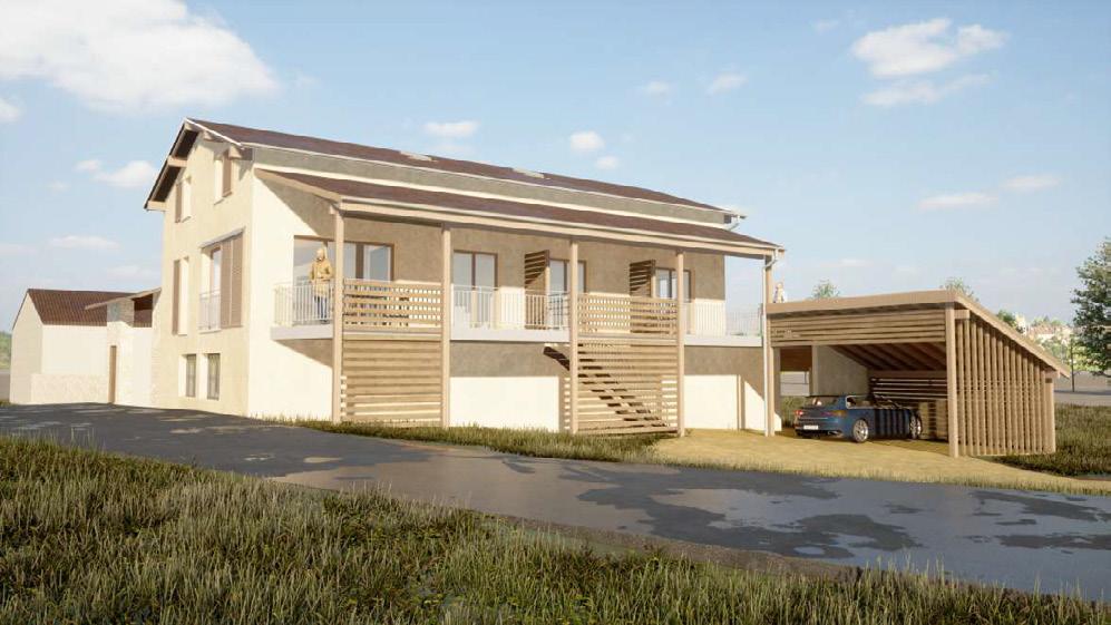 Vue SudNord-Est Vue Est Vue loggia Vue VueNord Sud Est Vue loggia Vue Nord SudEst Perspective Transformation d une grange en 2 logements E U R L D ARCHITECTURE Sébastien CHOULET ARCHITECTURE INGENIERIE 115 Route de Saint Laurent Les Auberges BP3 69770 LONGESSAIGNE Tél 04 74 70 28 00 E Mail contact@choulet architecte fr choulet architecte fr M et Mme Christian MICHALLET 08/02/2022APD Echelle OG & JB