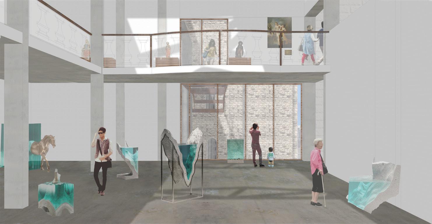 21 Rénovation et extension du musée Boucher de Perthes 05 -Développé de salle et perspective ( Autocad -Photoshop )