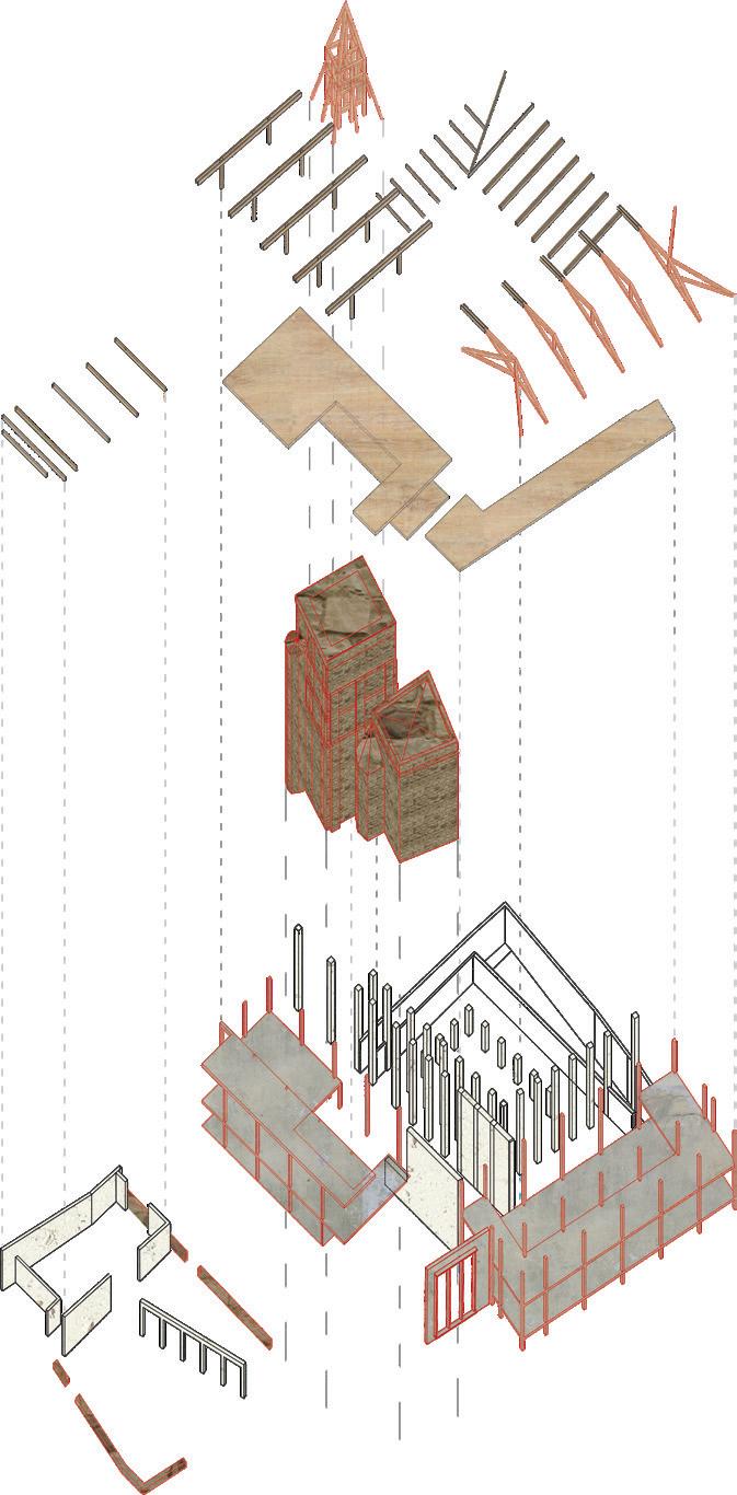 Administration Cafée Collection Boucher de PerthesCollection ReligieuseCollection Collection ManessierCollection Baie de AbbevilloiseSommeDépôt Chaufferie WC Atelier Salle polyvalente Réserve PC EntréeSécurité Accès au Beffroi Exposition CollectionCollectiontemporaireRenaissanceBoucherdePerthes (suite) Atelier restaurationde pédagogique Rénovation et extension du musée Boucher de Perthes 06 -Axonométrie structurelle et programmatique ( Autocad 3D )