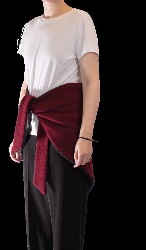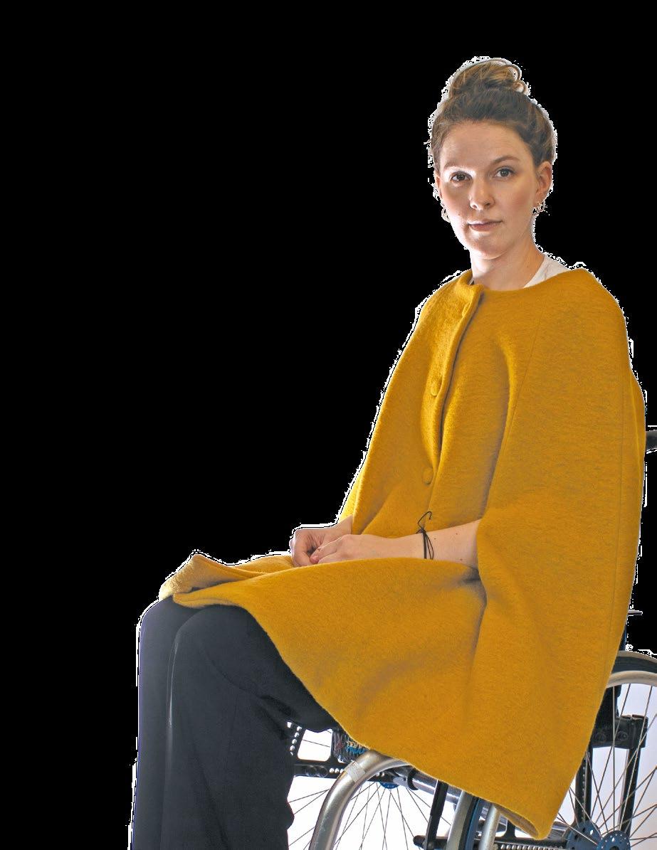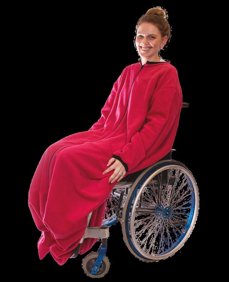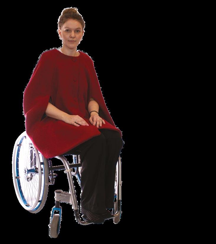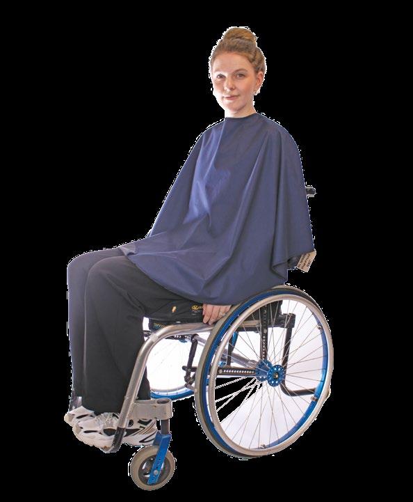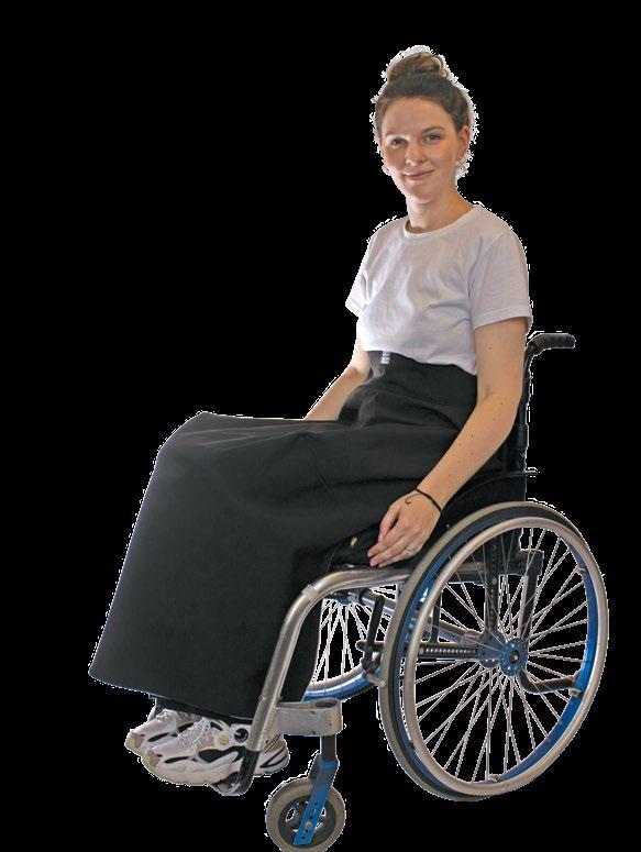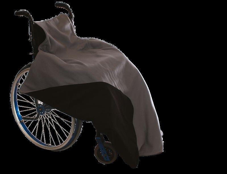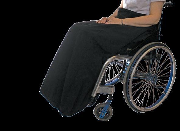 Dette produkt kan evt. kombineres med et lapcover til at have over forsiden af benene eller med et sjal, som er kortere bag til (til kørestolsbrugere).