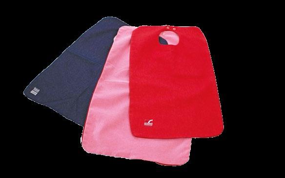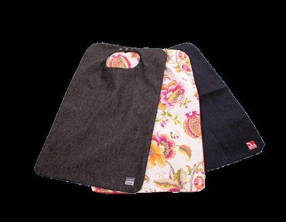 Heldækkende spisestykker fås i flere størrelser og kan tilpasses den enkeltes behov – kan også dække f.eks kørestol. Hvis personen spiser selv, kan vi med fordel lave huller til armene.