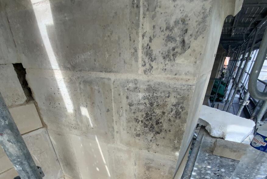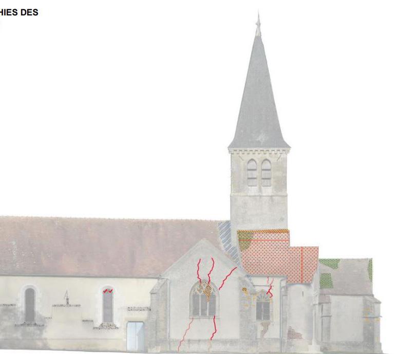 Le travail de diagnostic a permis ici de mettre en lumière de nombreuses pathologies, et notamment des dégradations pierres.