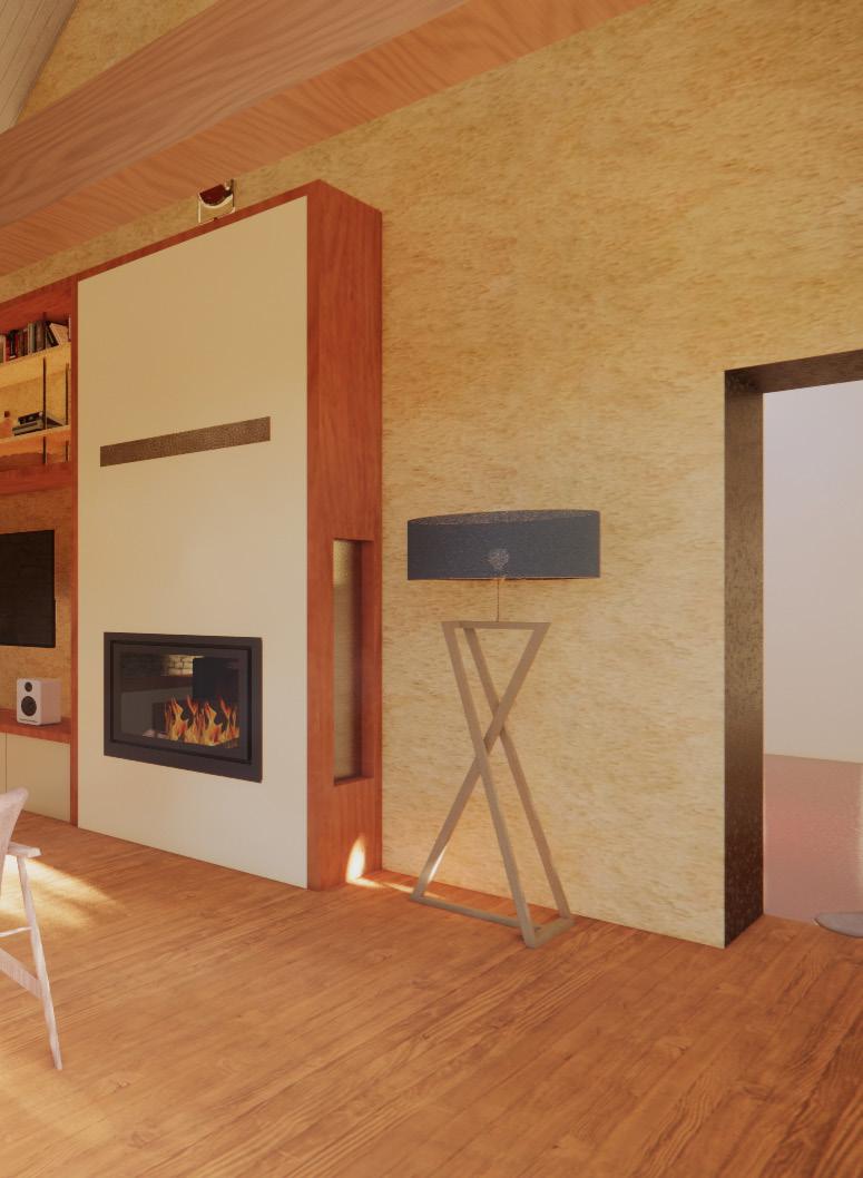 Il s’agit ici d’un projet effectué pour des particuliers souhaitant réhabiliter l’ancienne grange accolée à leur maison pour en faire un séjour. Ils souhaitaient également la création d’un meuble sur mesure, qui intégrerait un poêle, la télévision, et des rangements, bibliothèques.