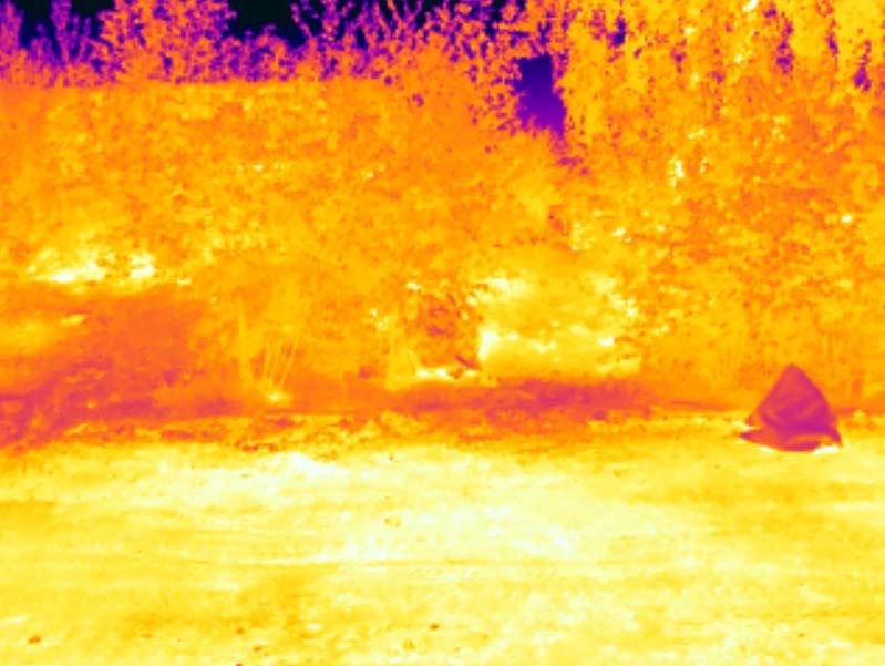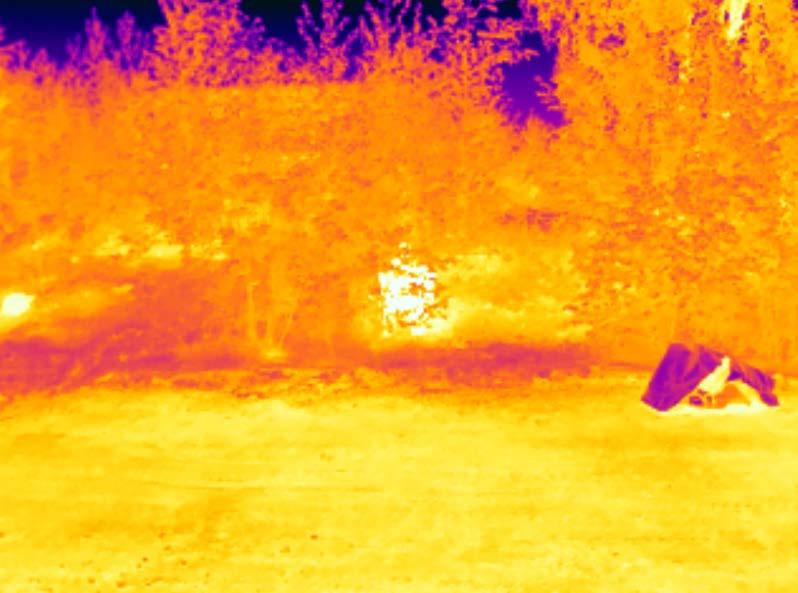 Subject under fabric: 27 min Outside temperature: 17 °C Hottest spot on fabric 19 °C Distance 15 meters