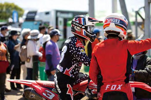 モトクロス競技は、起伏にとんだ未舗装道路で速さと技術を競う競技で、 そのスピードと白熱した戦い、そして刻一刻と変化する過酷なコースを駆け 抜ける選手のパフォーマンスを身近に体感できること、さらに選手とファン の皆さんの距離が近いことも大きな魅力の一つです。