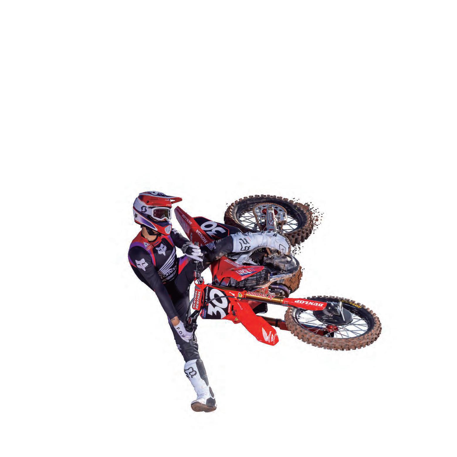 いた『小さな巨人』だ。「背が小さいことをハンデだと思ったことは一度もない。 最後のタイトル獲得となる1990年の序盤、苦戦するエリックは落ち込んスタートで誰よりも速く飛び出せばいいだけ。僕には秘密のテクニックがある でいた。そこで、レースのインターバルにトライアスロンにチャレンジした。モトク エリックの地元ベルギーで開催された最終戦。初タイトルに賭けるライダーのロスライダーである自分でもフィニッシュできたことが自信となり、自分の走り 猛追をかわし続けた末、タッチの差でチェッカーフラッグを先に受けて決めたタフィニッシュライン近くで取材していた私の 心は震え、感動で涙がポロポロ…こぼれた。 える秘密のスタートテクニックを訊ねて 引退を決意したエリックに、今なら言 「そんなもの最初から無い。自分にそう言い聞かせていただけだよ」と笑い飛 ばされた。