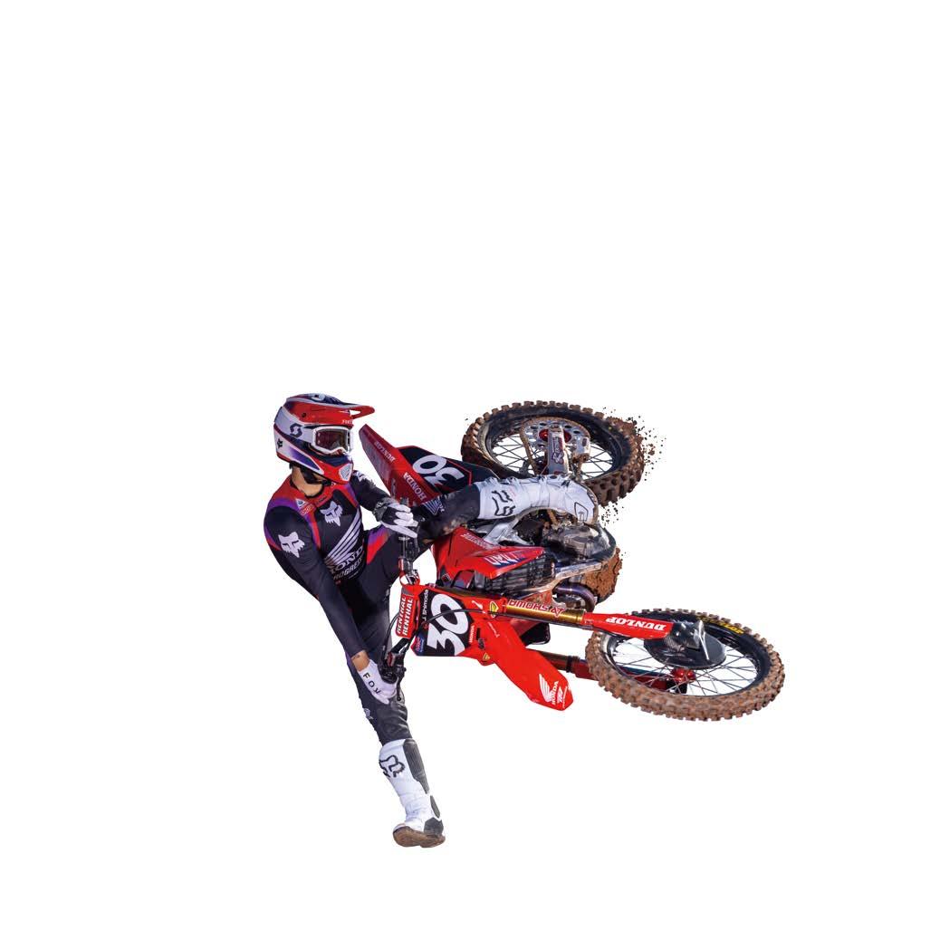 ●レース中のライダーが転倒しても、決してマシンに触れないでください。