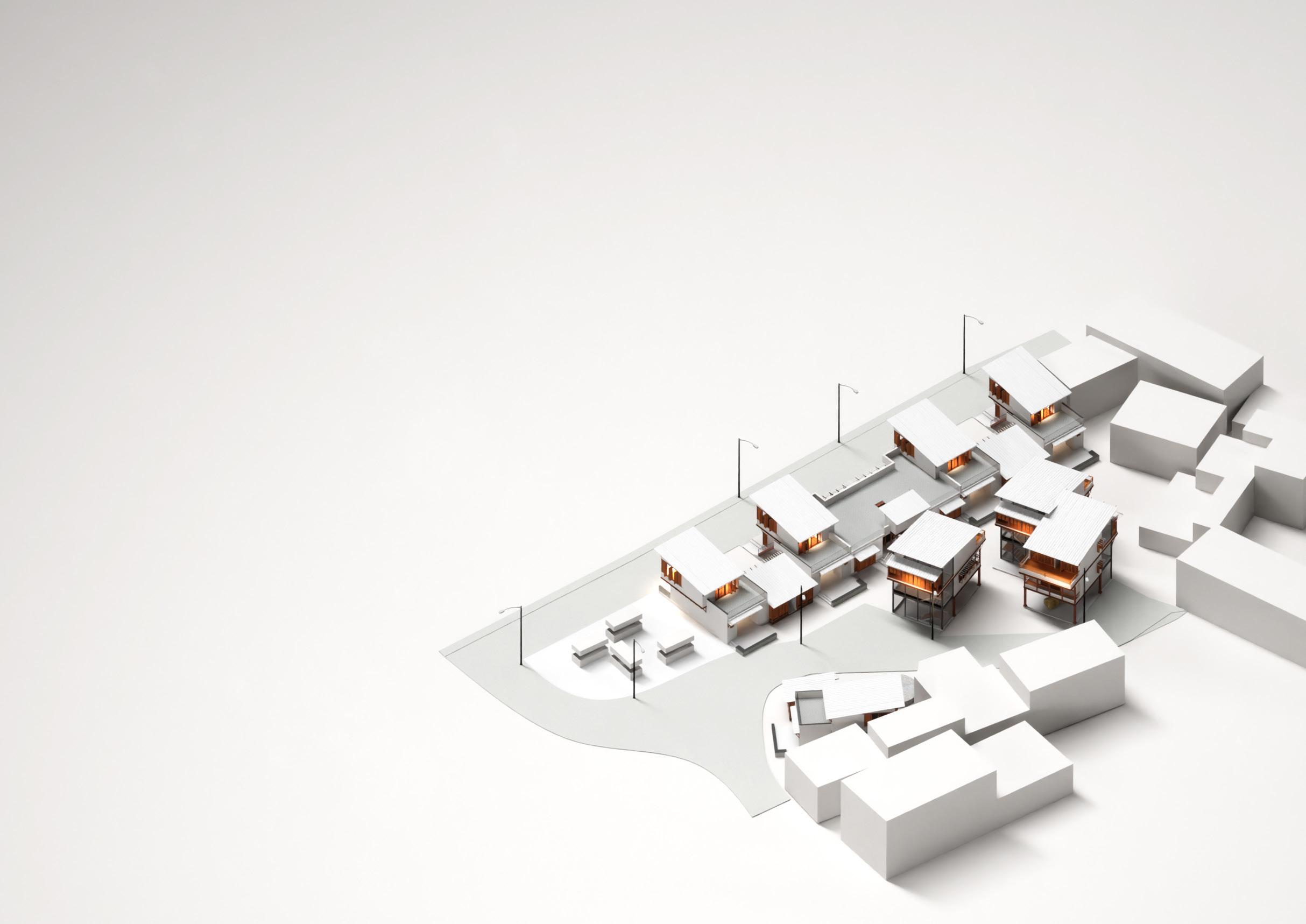 By employing three distinct house types with varying shapes and sizes, a cluster was crafted to accommodate village residents, offering them urban spaces and Improved ameneties while preserving their traditional lifestyle.