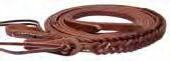 Has a single cheek adjustment. Features white stitching at browband and has water tie bit ends Havana.