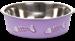 Comes with a removable cover that keeps the water from spilling over the side and the large round bottom is lined with rubber footing to help keep the bowl in place and preventing tipping.