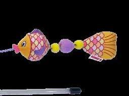 Has multiple chains of colored wooden blocks with plastic balls on the top & bells on the bottom. Approx. 5” x 19”.