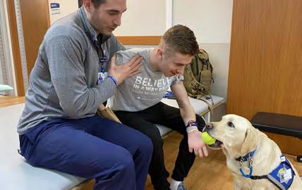 Facility dogs are carefully bred and expertly trained dogs that partner with a facilitator in a professional setting, like Magee, to assist patients with achieving their therapy goals. Facility dogs work side-by-side with trained professionals to engage patients in sessions designed to improve functional outcomes, stimulate healing and recovery, and provide comfort and unconditional love. While many healthcare facilities may have animals visit with patients, these animals are generally handled by volunteers and are not used to help patients meet specific, planned treatment goals. Through Magee’s Facility Dog Program, the treatment providers are health and human service professionals and patient outcomes are documented and measured.