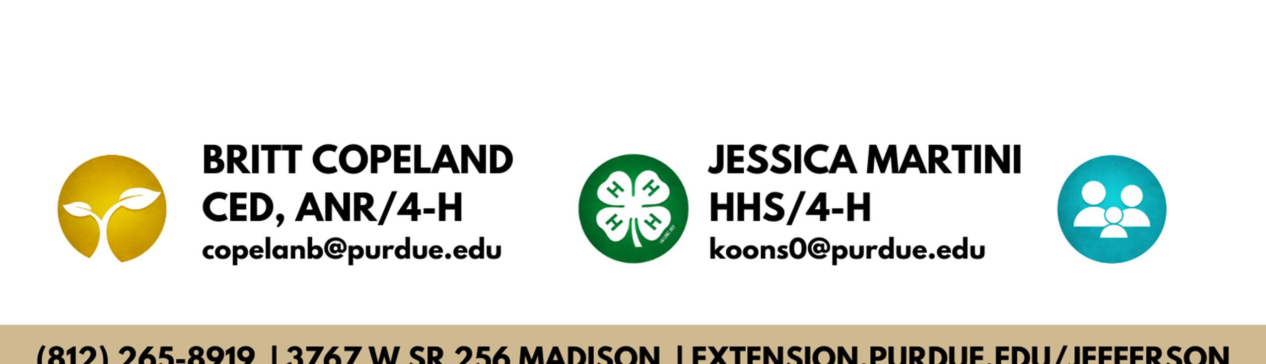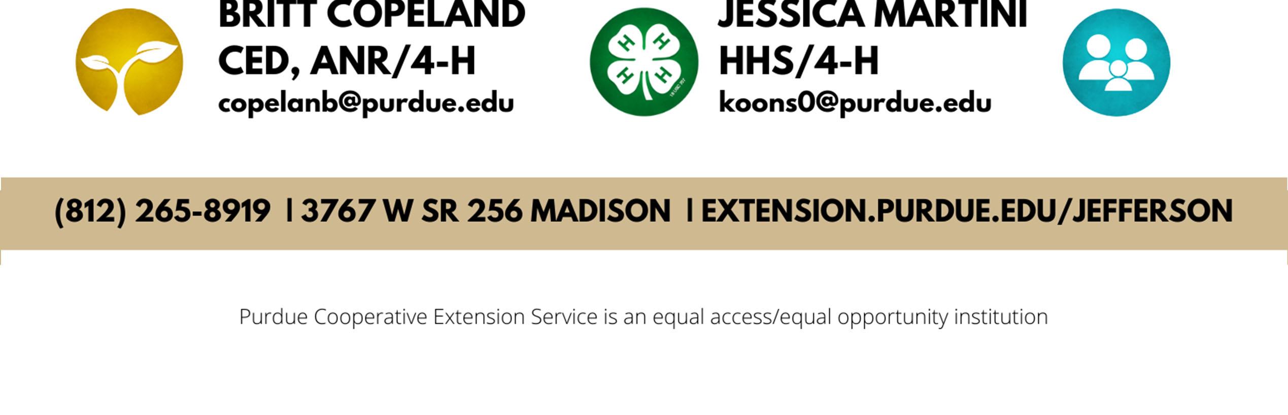 The most vital part of Extension is our dedication to being a community partner. We invite you to engage with us across all of our program areas so we may connect university knowledge to our community in the most beneficial way possible. Thank you for reading and supporting Purdue Extension in Jefferson County.