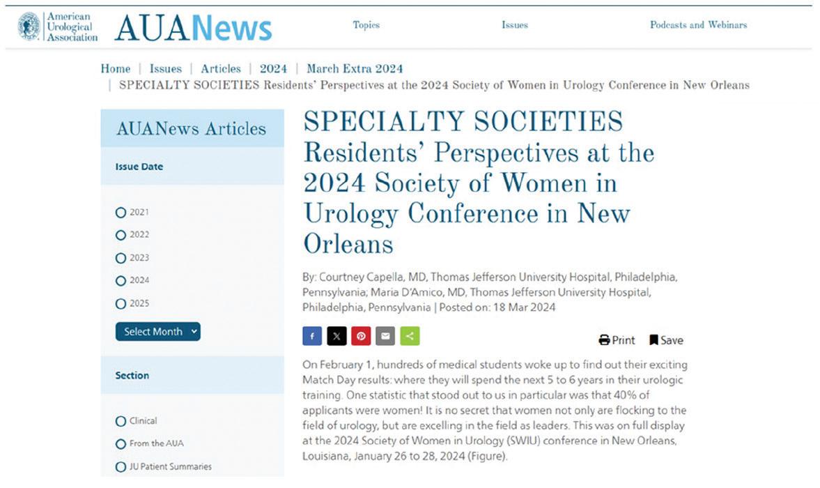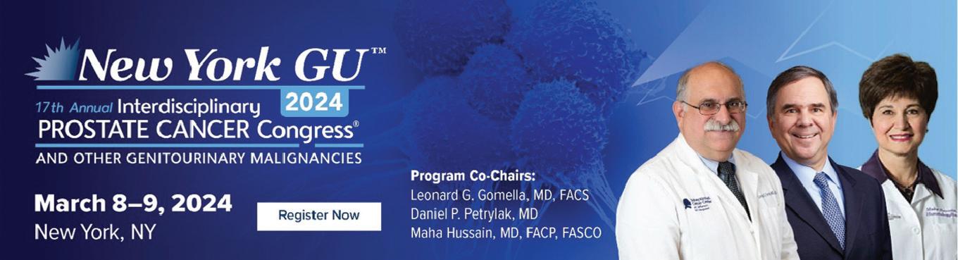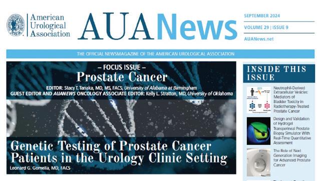 Members of our department including faculty, residents and students have been active contributors to the American Urologic Association News over the last year. Dr. Leonard Gomella contributed this article on prostate cancer genetic testing. Chief residents Drs. Maria D’Amico and Courtney Capella contributed an article on the 2024 Society of Women in Urology annual Meeting in New Orleans (see page 66). SKMC 2026 student Sohan Shah contributed an article on his Urology care Foundation Summer Medical Student Research Fellowship (see page 81) and SKMC 2025 student Yash Shah served as AUA News Medical Student Editor and made multiple contributions (see page 78).