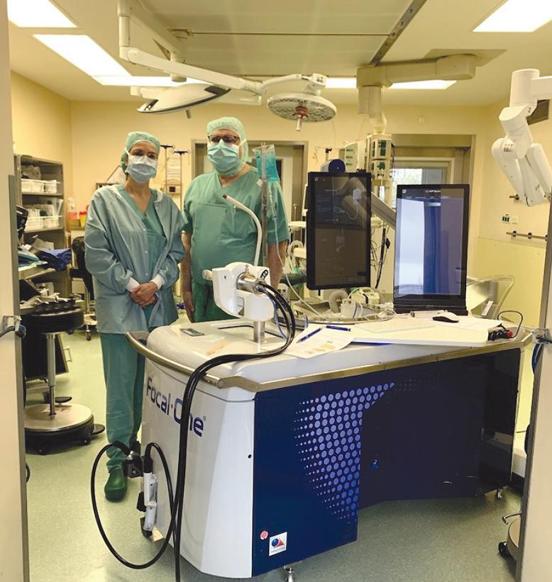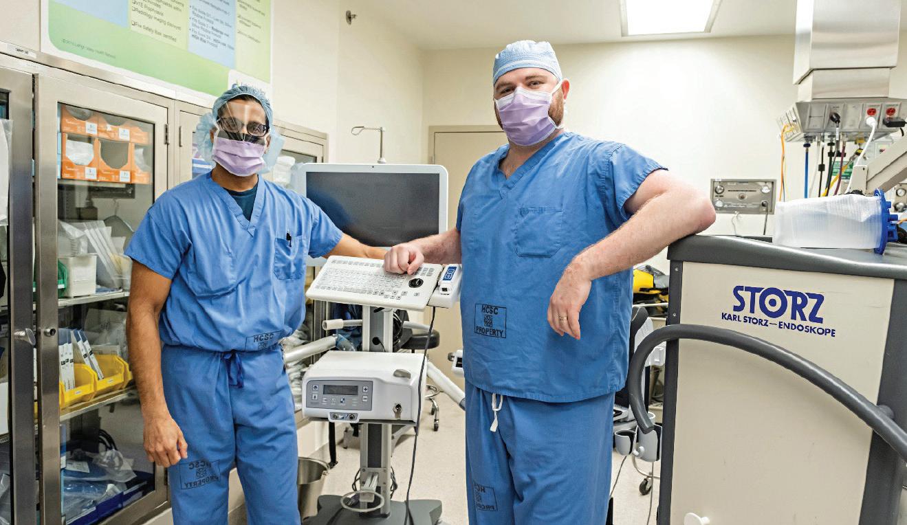 42 Dr. Scott Hubosky and Chief Resident Dr. Maria D'Amico using the new CVAC 2.0 System™. The CVAC System™ (Calyxo, Pleasanton, CA) uses laser lithotripsy, irrigation, and vacuum aspiration to optimize kidney stone clearance.