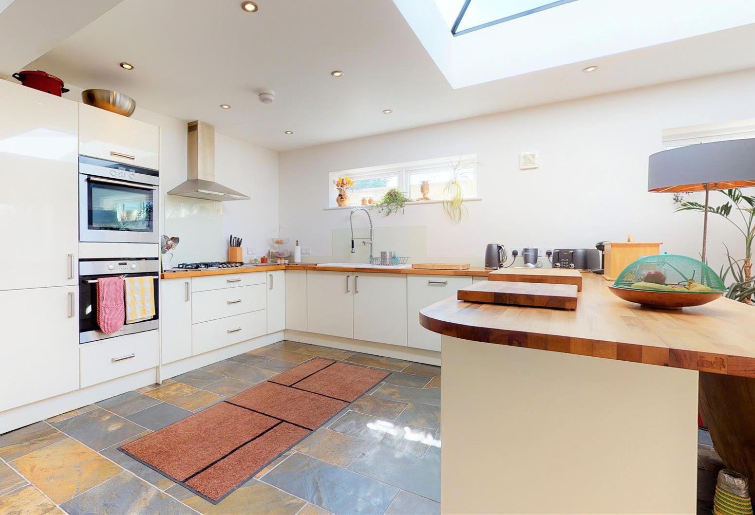 The property has been extensively refurbished throughout and now commands a stylish and spacious home with it’s contemporary and elegant interior. Briefly comprising an entrance hall, ground floor contemporary wet room, lounge (exposed original wood block flooring), impressive family room with under floor heating, roof lantern & bi-fold doors is open to a contemporary kitchen with dining area - porcelain tiled floor and with solid granite worktops and integrated with 2 fridges, freezer, dishwasher plus a built in oven & grill with 5 ring gas hob plus cooker hood and built in microwave convection oven, utility area.