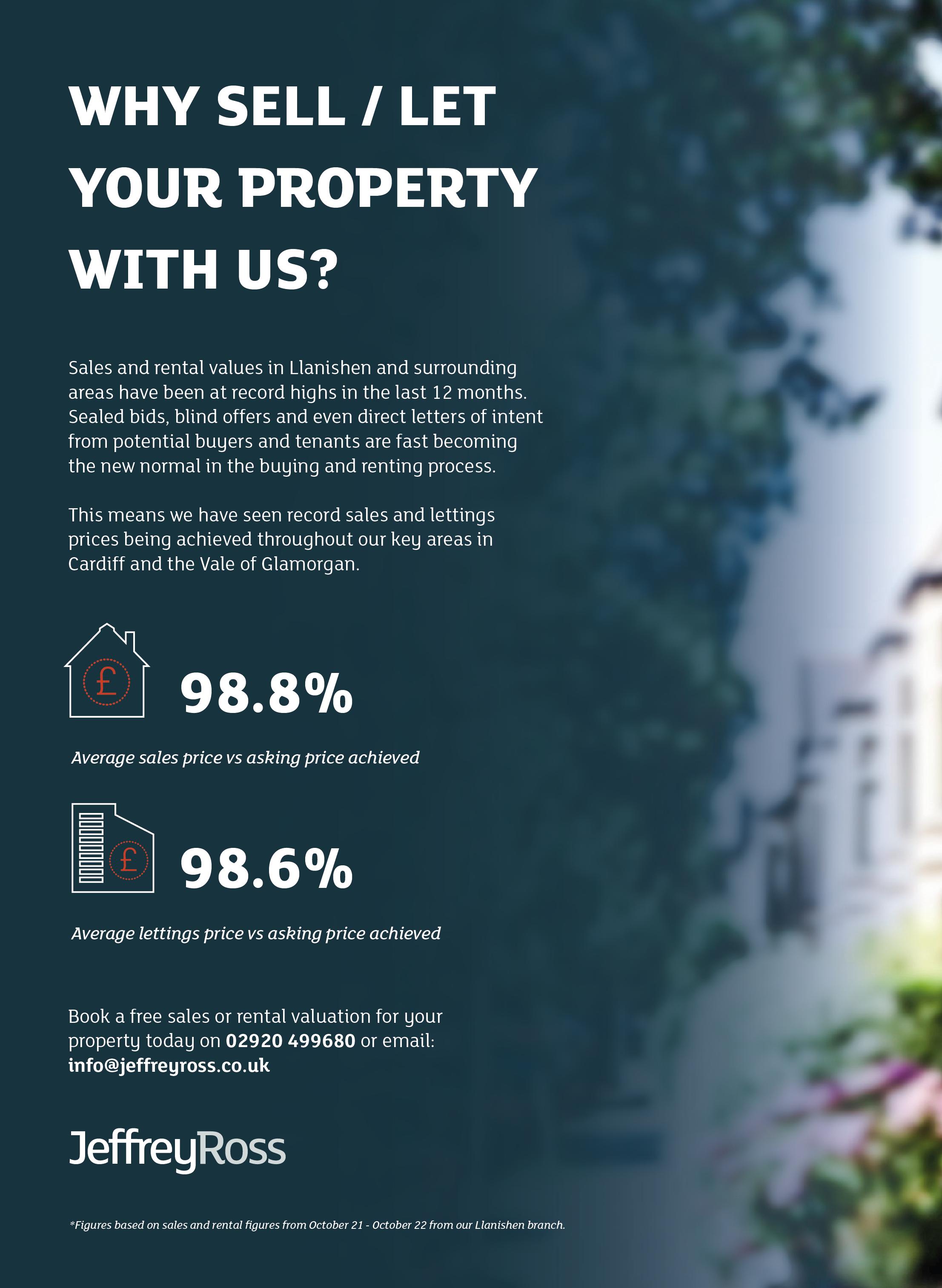 At JeffreyRoss we believe in getting the important things right which is why we look at property value very differently to our competitors. We have put together our area market insight for each branch across Cardiff and the key areas that we cover to enable you to get a full understanding of what is happening in your area for both sales and rental.