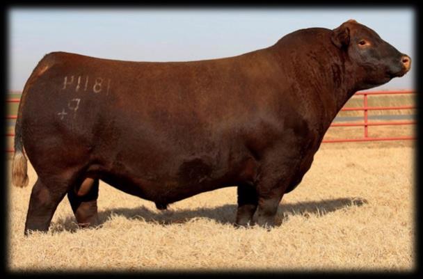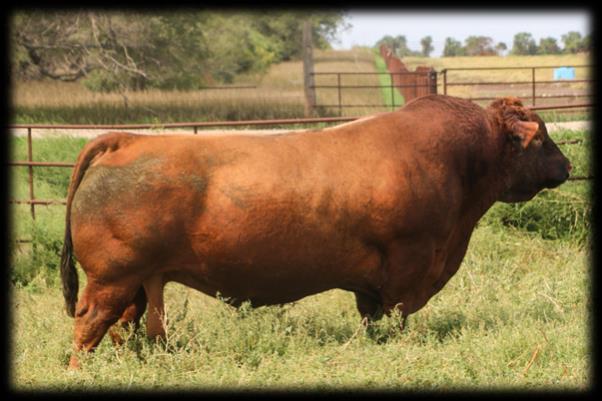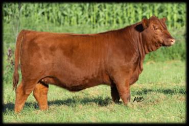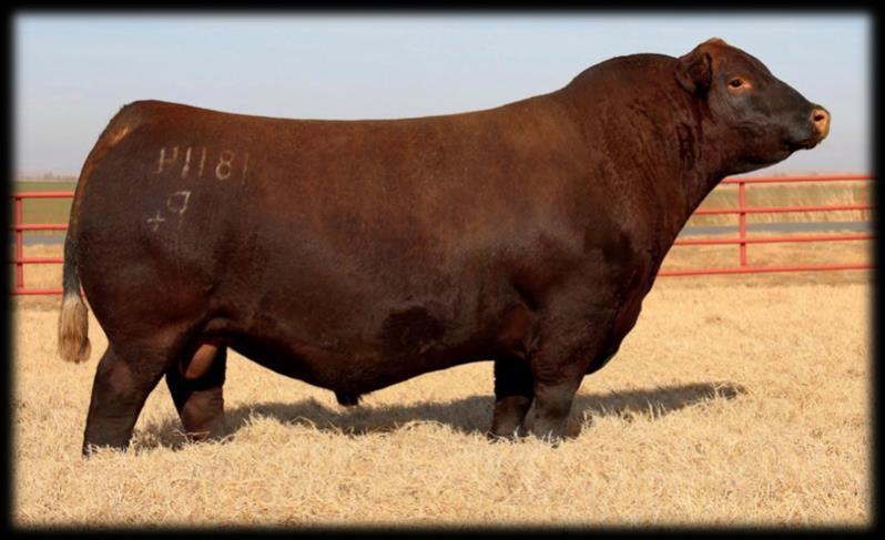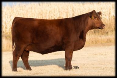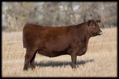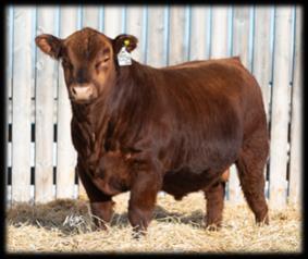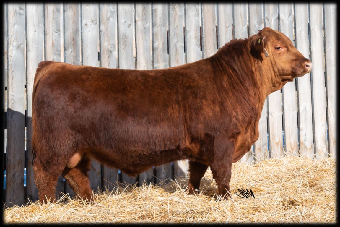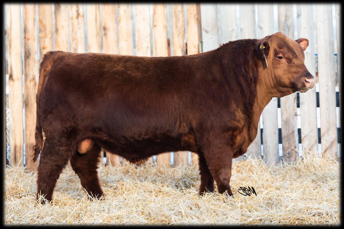 Easy fleshing, soggy and made for longevity. He's a long as a freight train and that perfect shade of crimson angus red! With an 63lb birth weight he can breed heifers all day long.