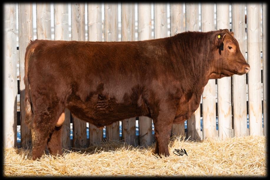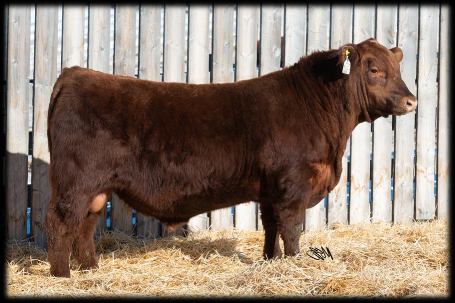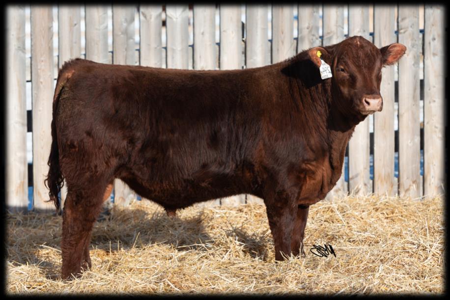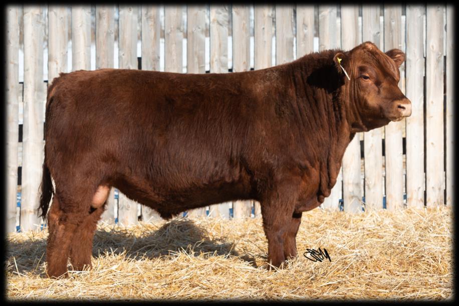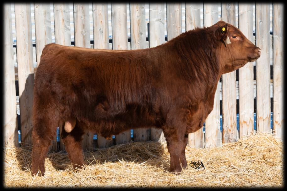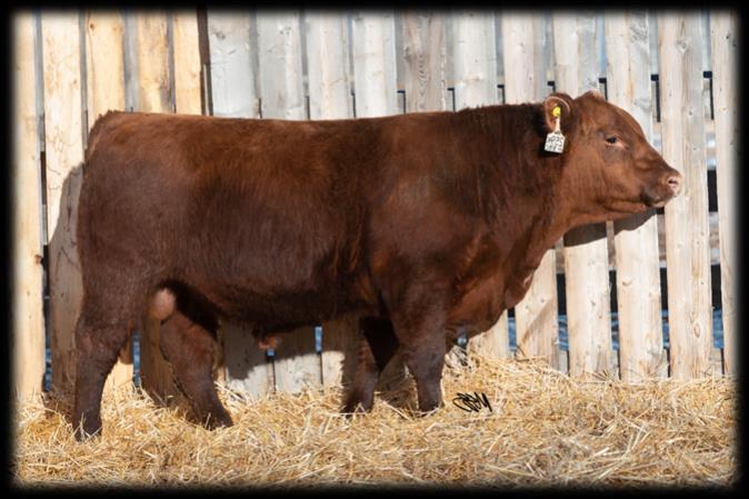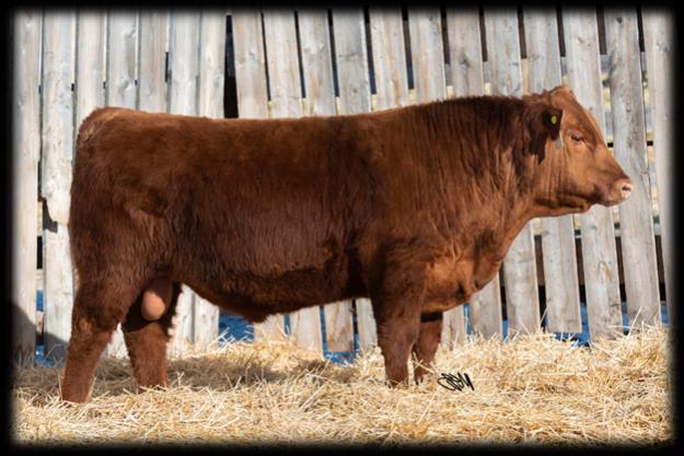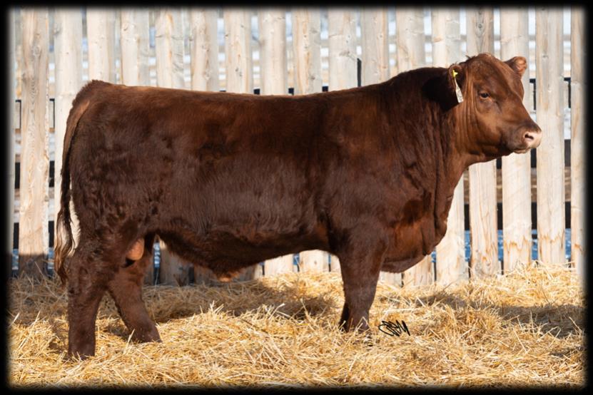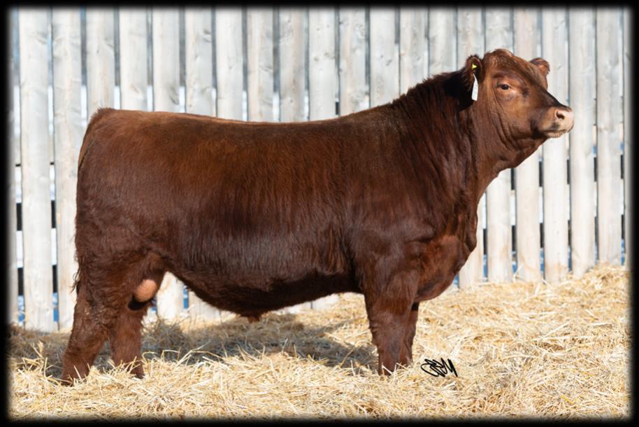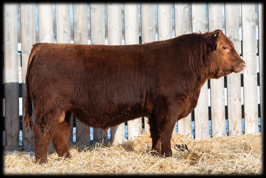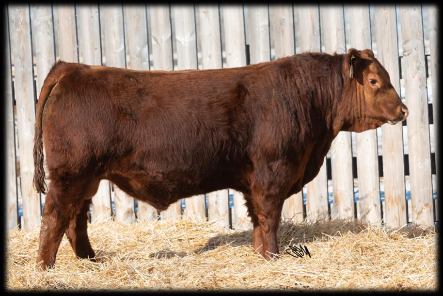 2022, a year of change around here. The addition of another farm hand, Jeffrey being home full time this fall, our first year on the show road in “many moons”; its been a busy 12 months! But here we have it, our 2023 bull offering. The bulls you will find within these pages show whatwe have been working towards the last 31 years. We have taken the time, driven the miles, searching for sires that backed what we believe in, “Progeny Built on a Trusted Foundation”. We are immensely proud of our bull offering this year; we can’t wait for you to come and have a coffee with us, chat about cows, and have a look through the pen. That is why we continue, year after year to offer our bulls as private treaty. It gives us and you the opportunity to see the bulls in their natural environment and see other animals with the same or similar pedigree; all at your own pace. No rush and no pressure. Thank-you to our past, present, and new customers for your continued support in our program.