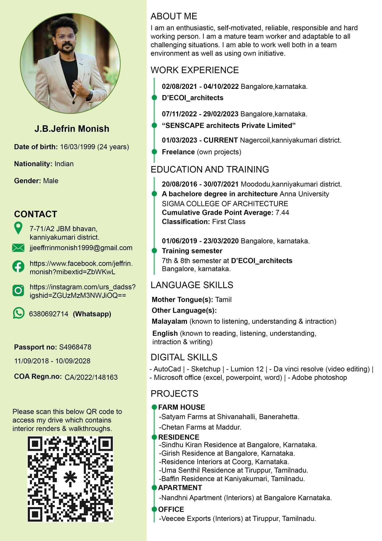 Ar. Jefrin Monish resume & portfolio