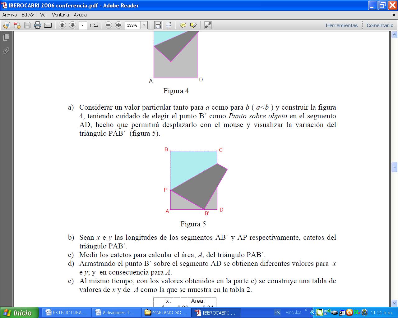 Considerar una cartulina rectangular ABCD de lados a y b, 0 < a ≤ b (Figura 1). De tal manera que, al doblar la cartulina el vértice B “caiga” sobre el lado opuesto (AD) ̅ en el punto B^', formando el triángulo rectángulo PAB^' (P es el punto de doblez del lado (AB) ̅). ¿Cuáles deben ser las dimensiones de l