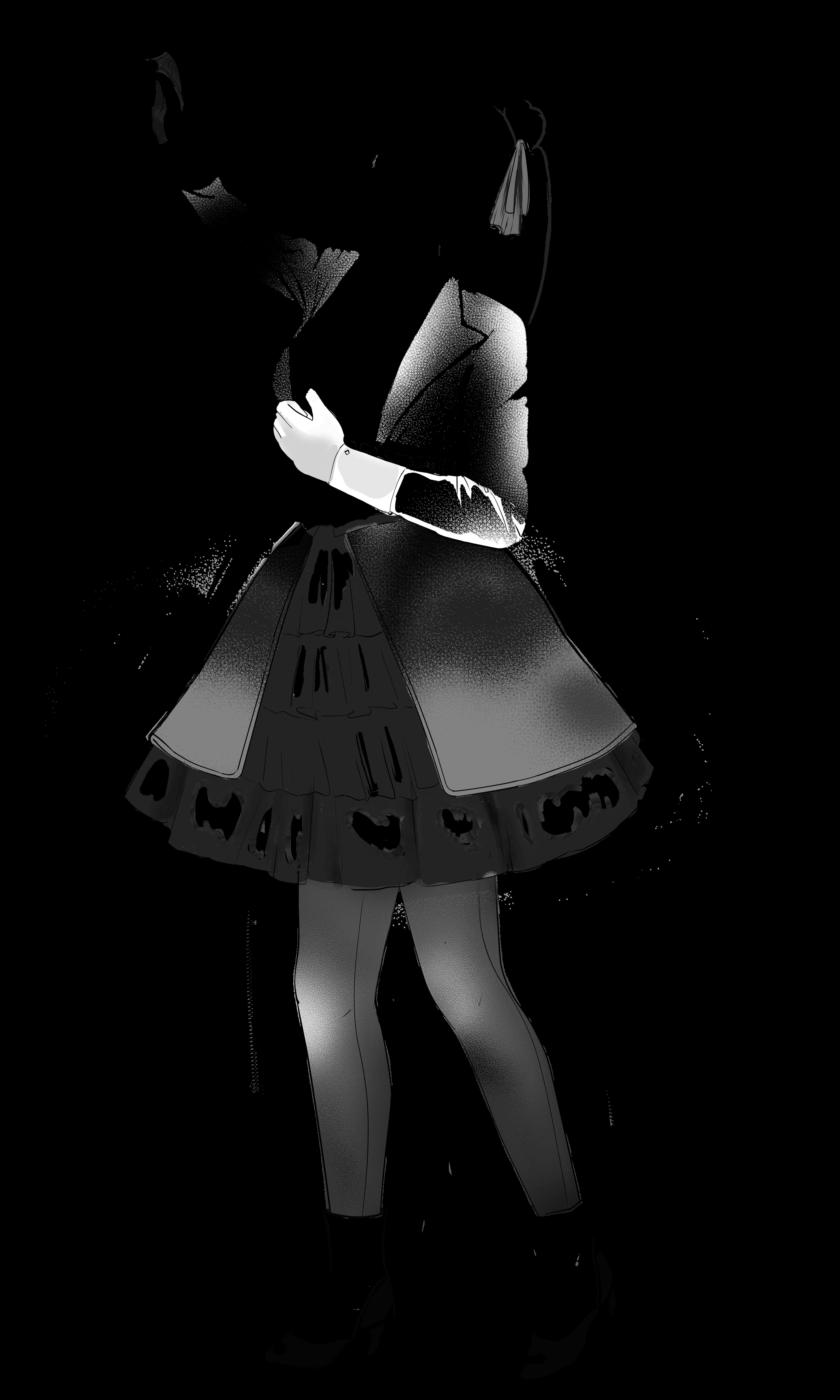 Se decidió aplicar una textura de relleno para sombras y tipos de tela, ya que los mangas son puramente en blanco y negro a excepción de la portada que es full color.