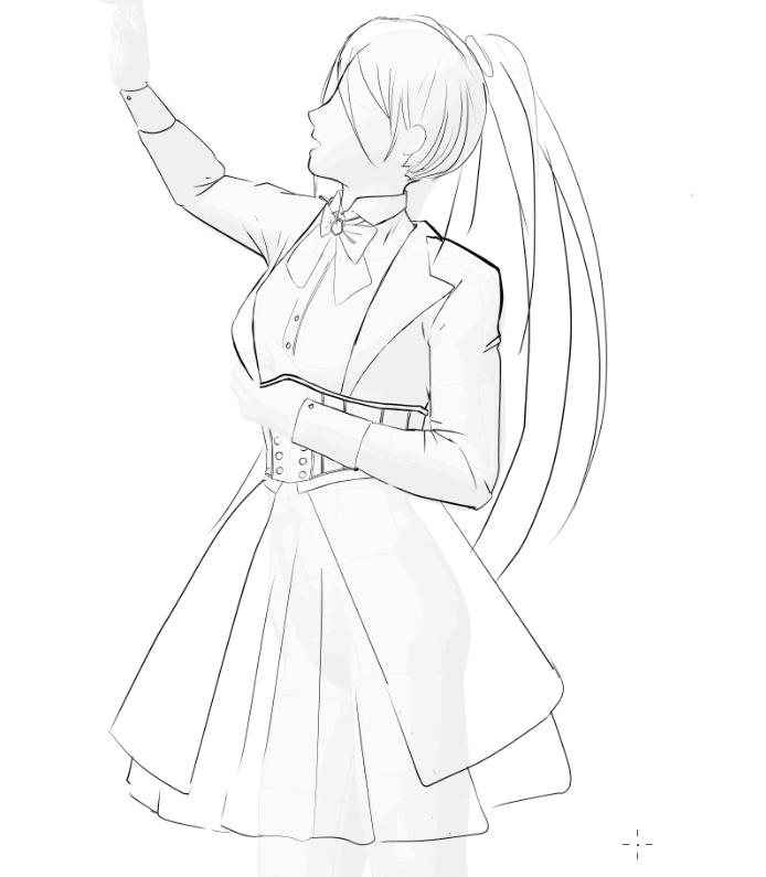 Los cuales eran muy grandes y abultados, además de pensar en que el personaje debería de poder moverse fácilmente para hacer su trabajo como guardia, actividades como correr o saltar se volverían muy difíciles de hacer con un vestido largo y liso.