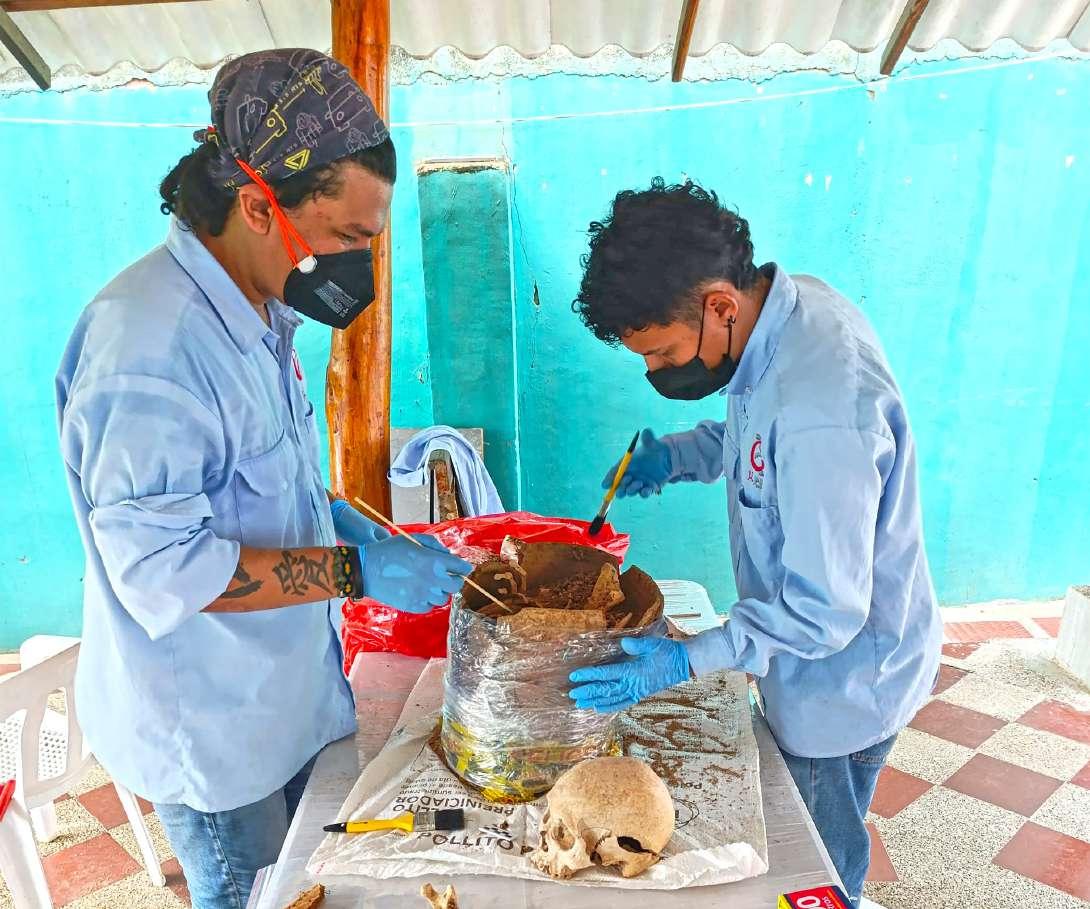 Durante el acompañamiento arqueológico realizado en la vereda La Gloria, corregimiento de Tomarrazón (Riohacha), fue descubierto un contexto funerario compuesto por tres urnas.