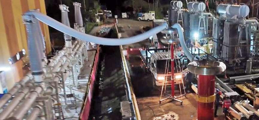 Se realizaron ensayos a equipos de maniobra y transformadores de instrumentos, así como la exigente prueba de tensión aplicada y descargas parciales, empleando el sistema resonante de PRUELES (hasta 720kV) y el sistema UHF 800 de OMICRON con sensores especializados.