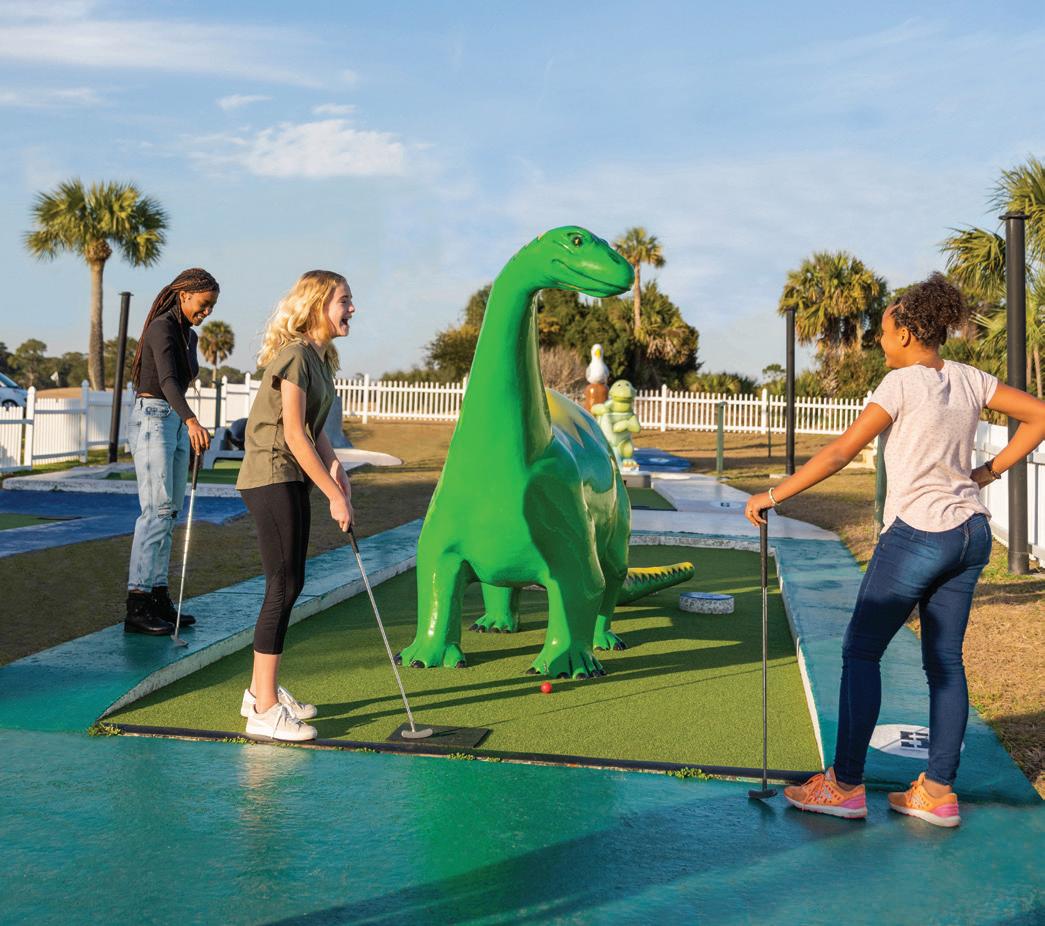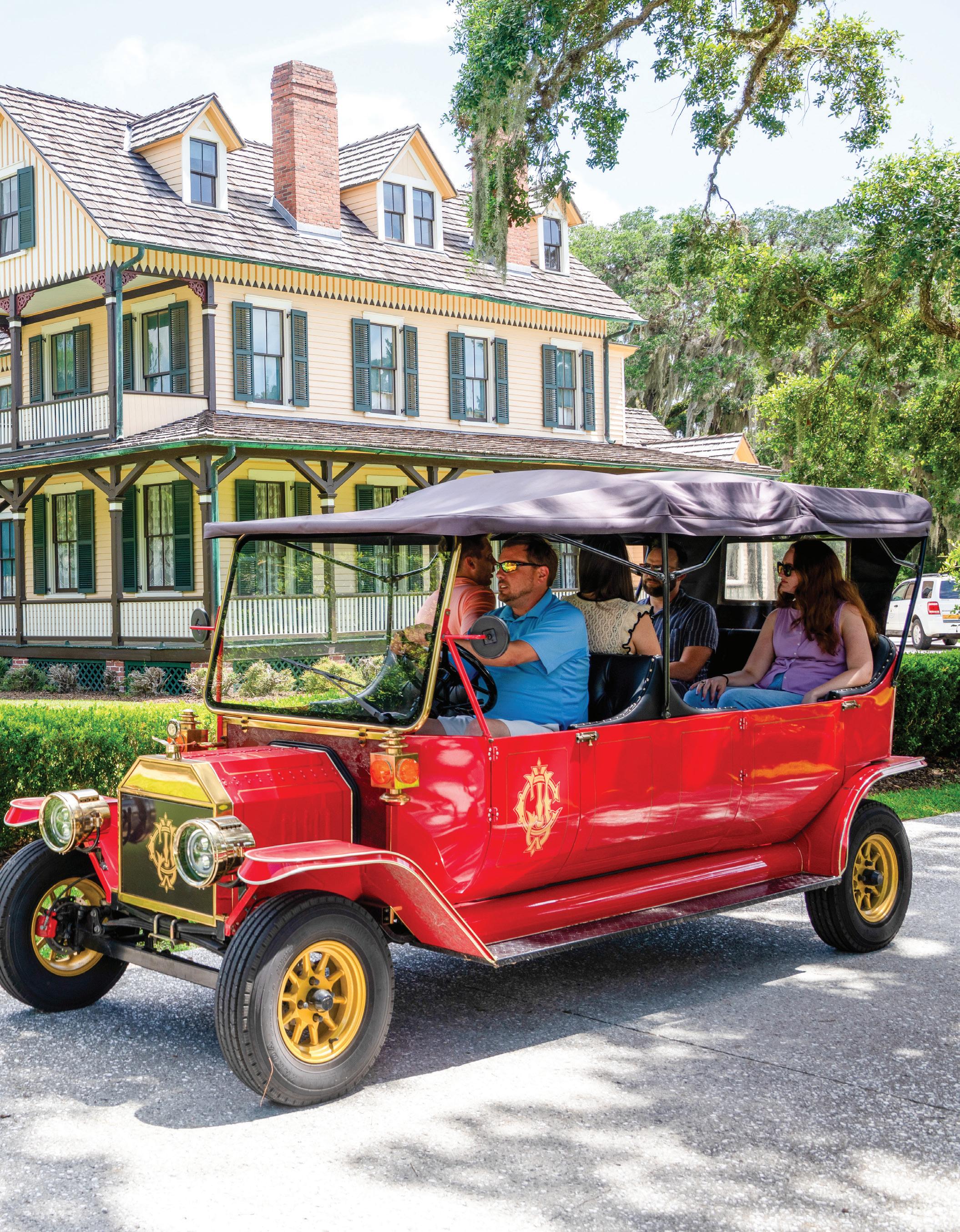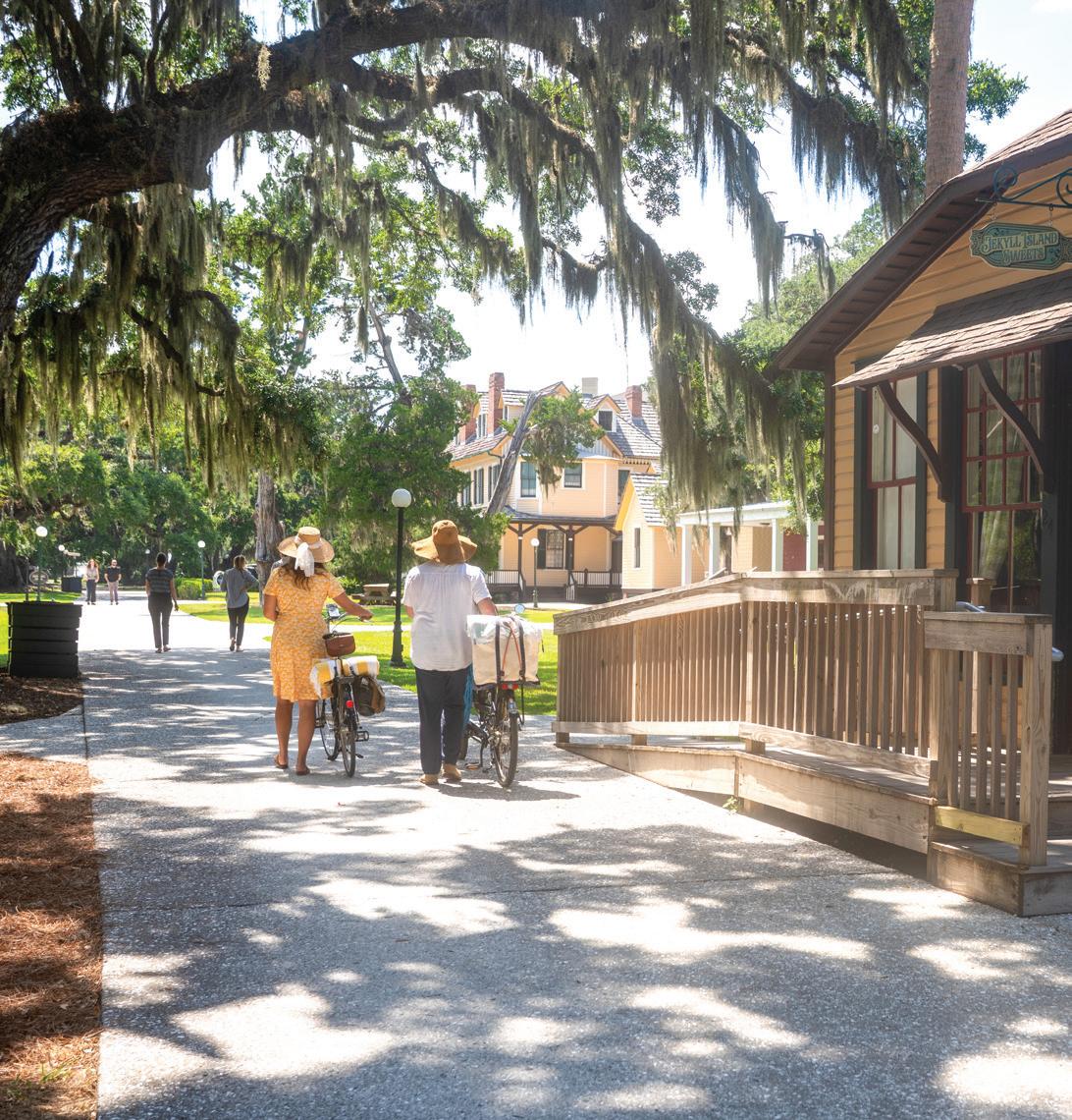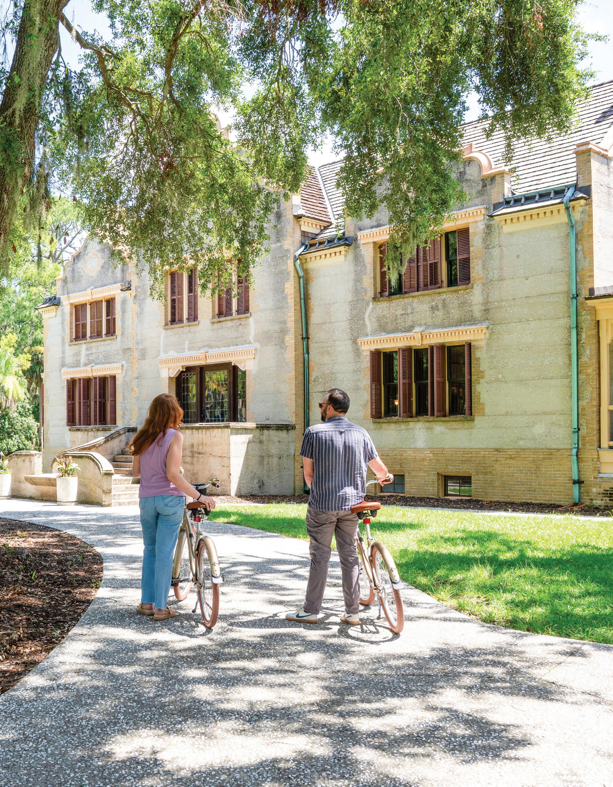 Sometimes the best way to connect with a place is on foot. The Jekyll Island trail system has over 30 nature and urban trails, including family- and pet-friendly routes. Do the 0.3-mile hike to Driftwood Beach, or stroll the 1.4-mile road from Horton Pond to Horton House. The Jekyll Island North Loop trail offers a comprehensive 18-mile excursion, while the very walkable Historic District makes it easy to wander and get steps in while learning about the Gilded Age. Jekyll Island Museum even has a selfguided walking tour with maps and interpreted signage to help you identify buildings such as Faith Chapel, which boasts an original Tiffany stainedglass window.