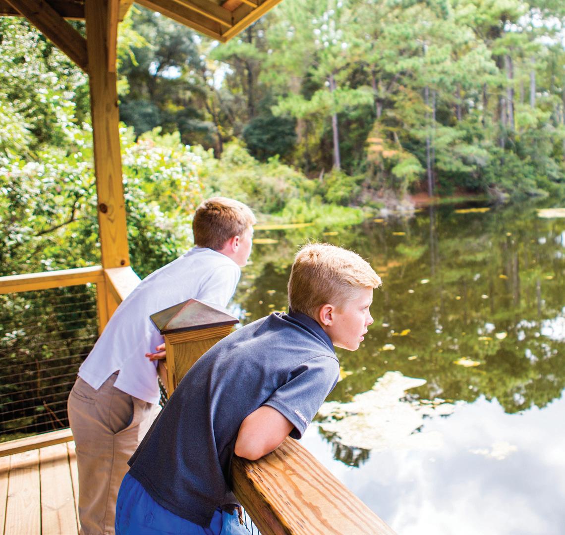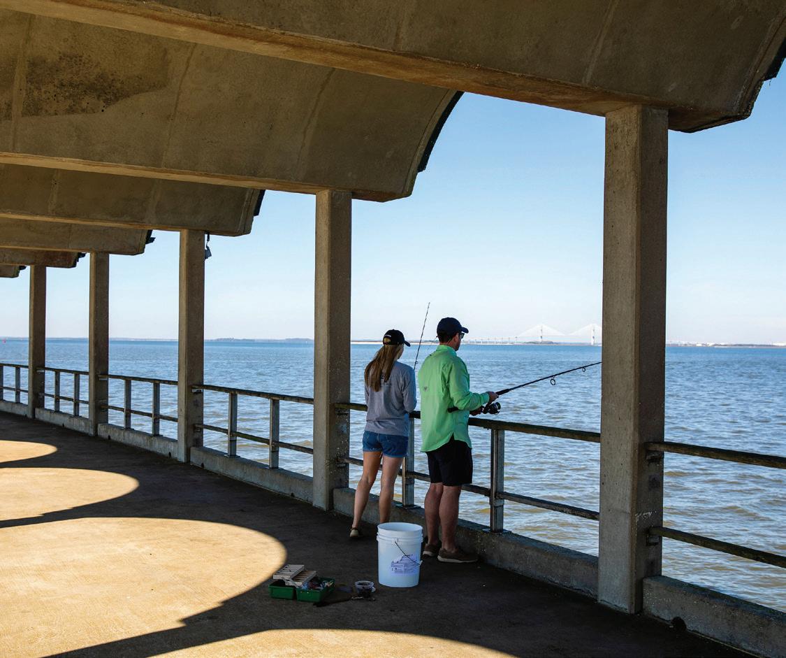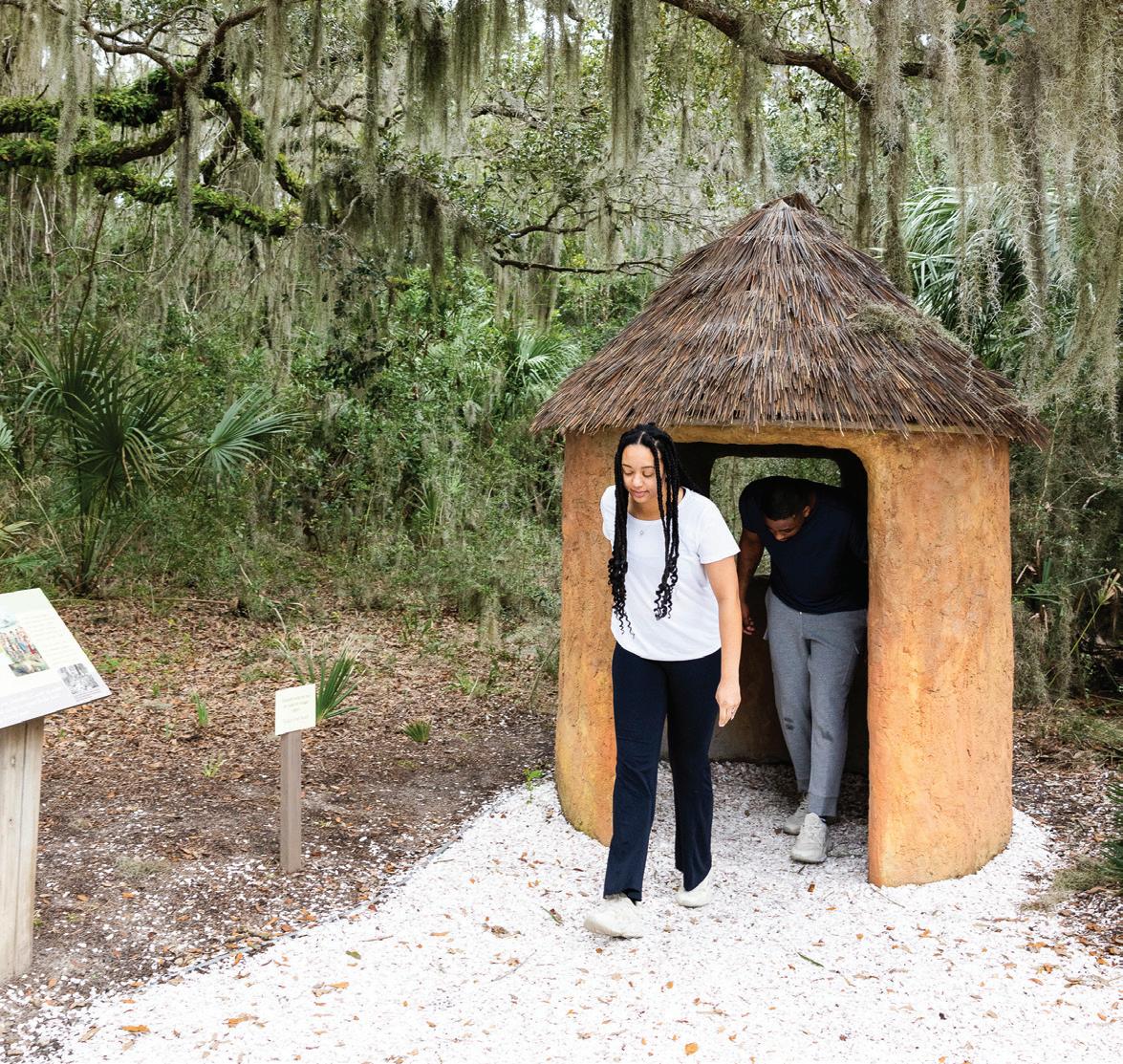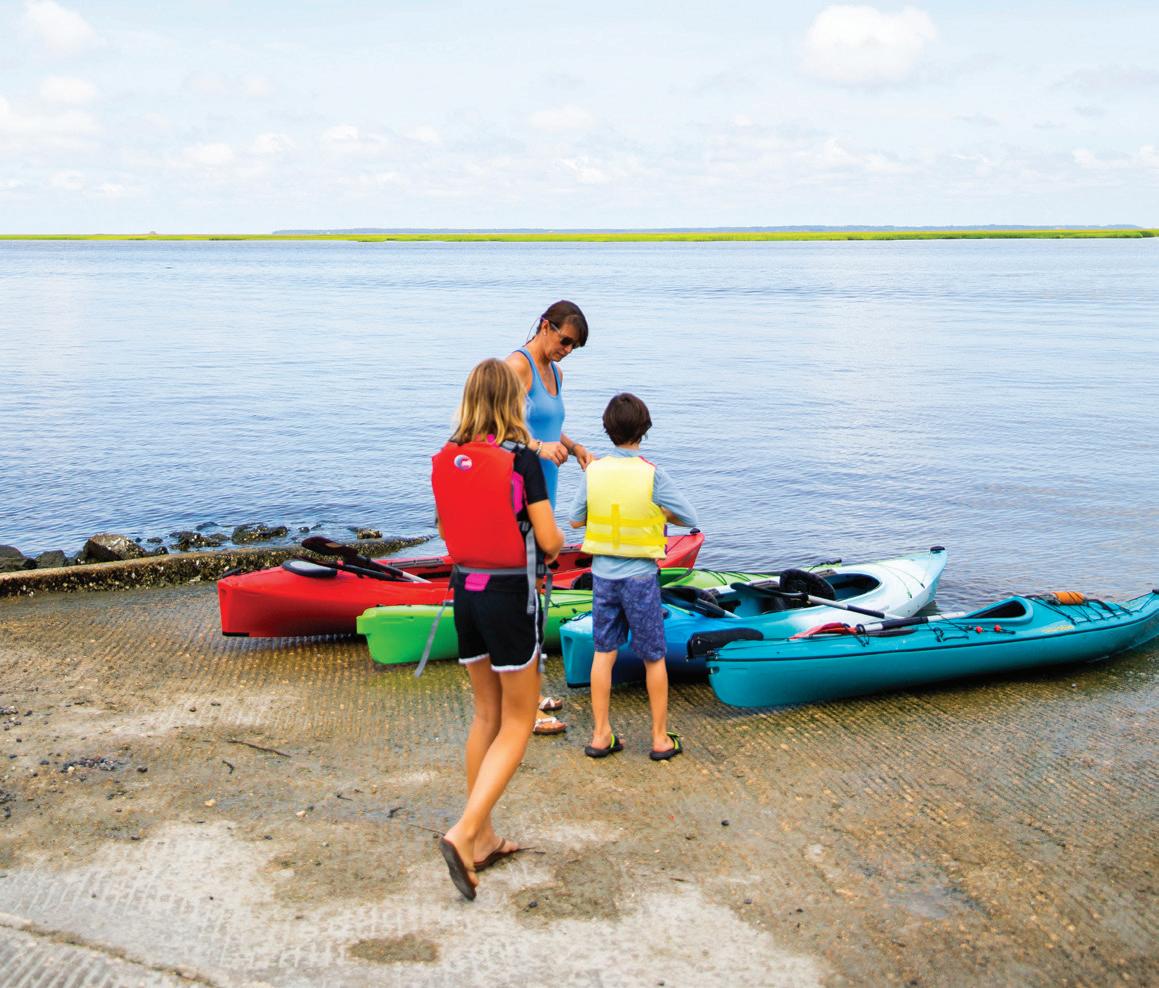 Sometimes the best way to connect with a place is on foot. The Jekyll Island trail system has over 30 nature and urban trails, including family- and pet-friendly routes. Do the 0.3-mile hike to Driftwood Beach, or stroll the 1.4-mile road from Horton Pond to Horton House. The Jekyll Island North Loop trail offers a comprehensive 18-mile excursion, while the very walkable Historic District makes it easy to wander and get steps in while learning about the Gilded Age. Jekyll Island Museum even has a selfguided walking tour with maps and interpreted signage to help you identify buildings such as Faith Chapel, which boasts an original Tiffany stainedglass window.