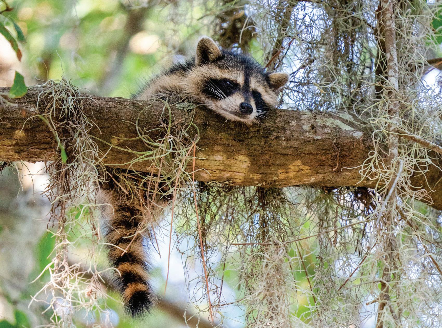 seed-producing plants all over our landscape,” says Yank Moore, the director of conservation for the Jekyll Island Authority. He even recalls the team finding a prickly pear growing in an oak tree, thanks to a raccoon’s waste. Raccoons are dogood exterminators, making meals of rodents, which helps prevent parasites from spreading; they are also opportunists, ever scavenging.