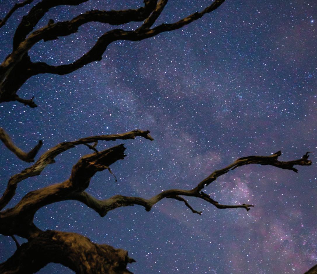 Some of Jekyll Island’s fungi glows gold in late summer and fall. Aptly named the jack o’lantern mushroom, thanks to their orange coloring and the season when they emerge, large colonies reside in rotting hardwood trees and among palmettos across the island. These colonies are known for their occasional ability to glow in the dark; this bioluminescence comes from phosphorus that the mushrooms absorb and that attracts nocturnal insects to land and spread spores. Folklore has spread over the years about how they illuminate the way for travelers or even contain trapped souls. The pumpkin-colored stacks are toxic to humans and animals despite looking similar to tasty chanterelles. Look for the jack o’lantern’s distinctive gills to differentiate it from its gourmet twin. For now, we can admire their radiance and spooky glow from afar.