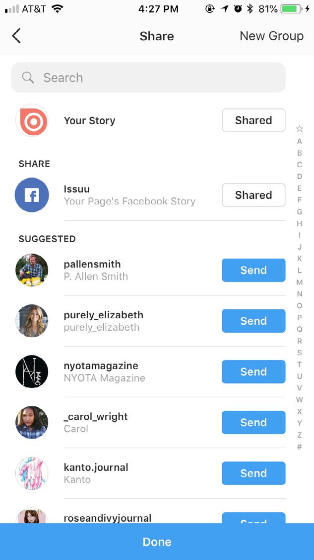 Good to Know: Facebook Stories do not allow linking out yet. In your Publication List on Issuu, you can also select the “Share” button for Facebook to post the Publication directly.