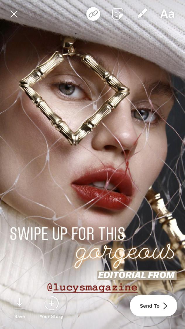 2. For business profiles with over 10K followers, make sure to add a “Swipe Up” call to action towards the bottom, then add your Issuu Story link (or full Publication link) using the paperclip button.