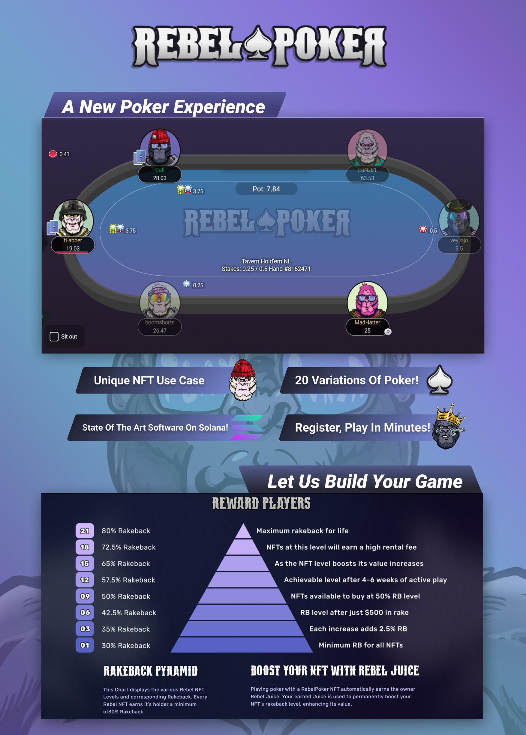 Access to Rebel DAO, granting you access to poker bonuses and promotions, exclusive educational content & subscriptions