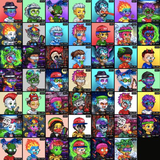 As you guys know the JJD treasury holds 48 rascals. Beneath you will find a collage of all 48 rascals with ranks that we own. Generating a daily 270 $Jelly (with 3 gamerooms)