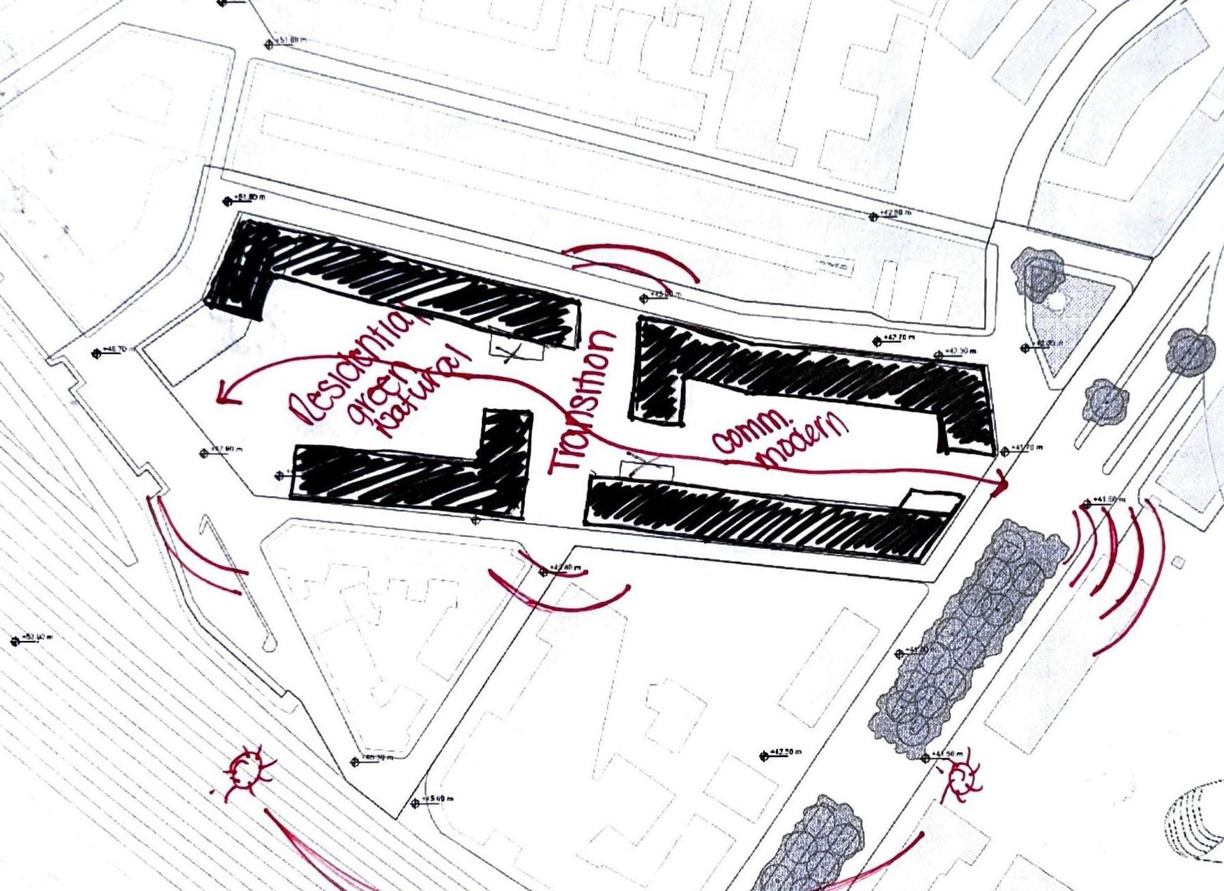 Prosper Park will offer an opportunity to redevelop San Lorenzo by connecting the community and people through an open site design and uniting the community through growth and empowerment. The main goal of this project is to provide San Lorenzo with new public spaces that stitch back to the historic elements of the neighborhood. Currently, San Lorenzo offers a variety of architecture that does not meet the general needs of the population. Courtyards throughout San Lorenzo are often small, with minimal light and even less greenery. Through designing the masses and forms for Proper Park, the organization started with two bars stretching along the northern and southern borders of the site, mirroring surrounding buildings. These extrusions help create a central axis through the park. Trees will embrace the site facade as a barrier between the disrupting roadway and the open spaces inside. Community spaces are on the ground floor of the building. These areas are designed as open courtyards with green spaces, allowing people to experience this site differently through each central point. An open greenery expanse will flood the landscape, embracing the site with multiple over and understory trees for shade and ornamental factors. These open spaces allow people to come and relax, as San Lorenzo has many people in the working class and a university nearby. Prosper Park will provide San Lorenzo with the community and public spaces the neighborhood lacks, providing space for community involvement and social inclusion.