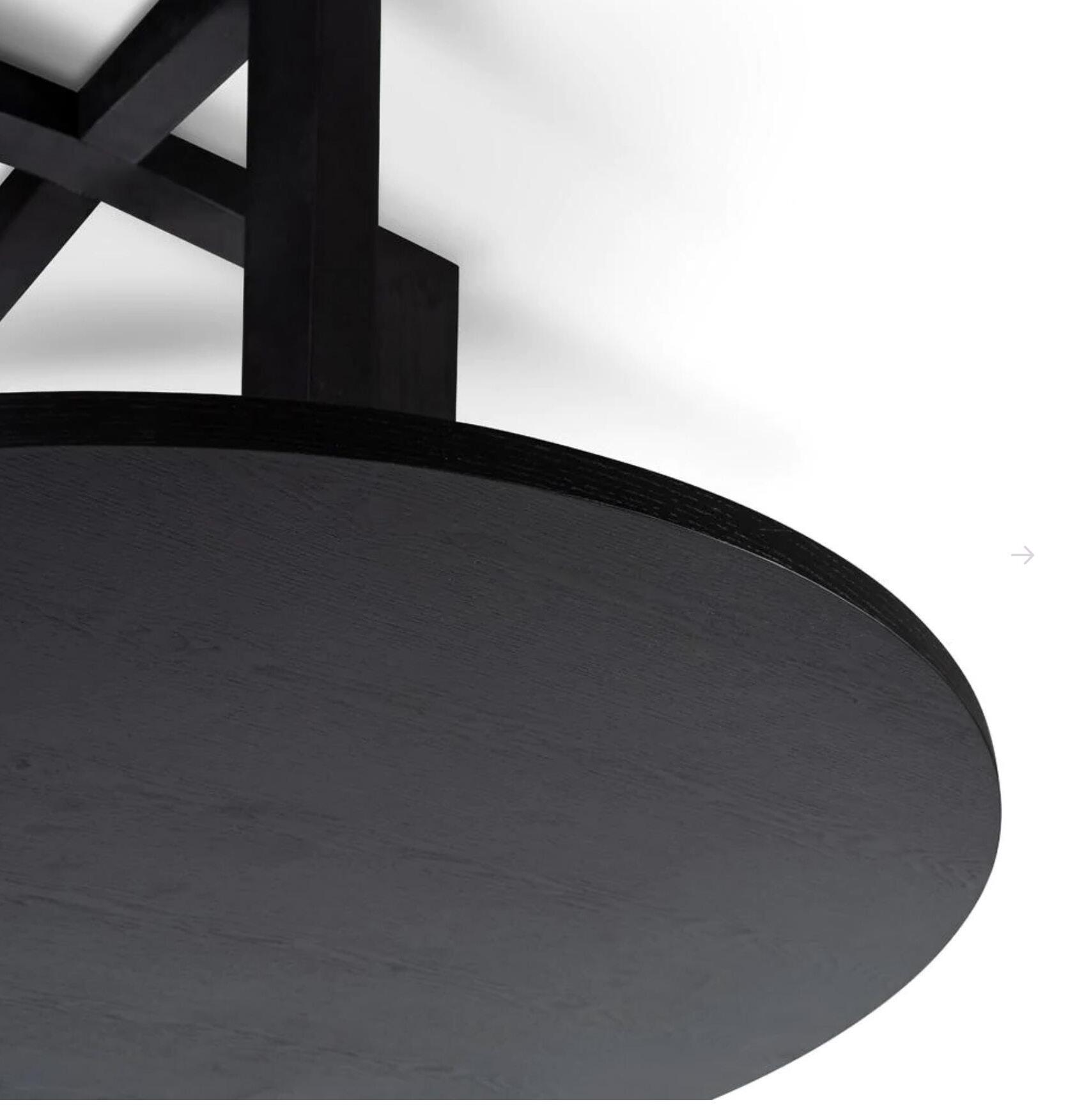 The design features a precise and clean aesthetic with an ash tabletop and legs. The statement legs connect to the floor with a bold base plate. Internal black steel ring provides superior rigidness with style.