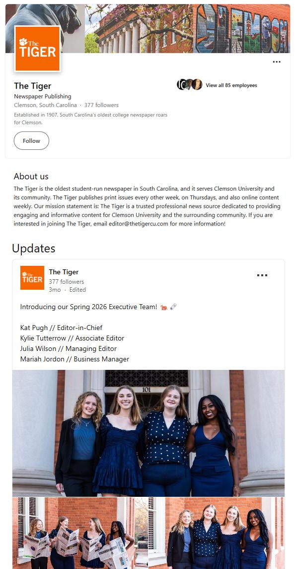 The Tiger, Clemson University SECOND PLACE
